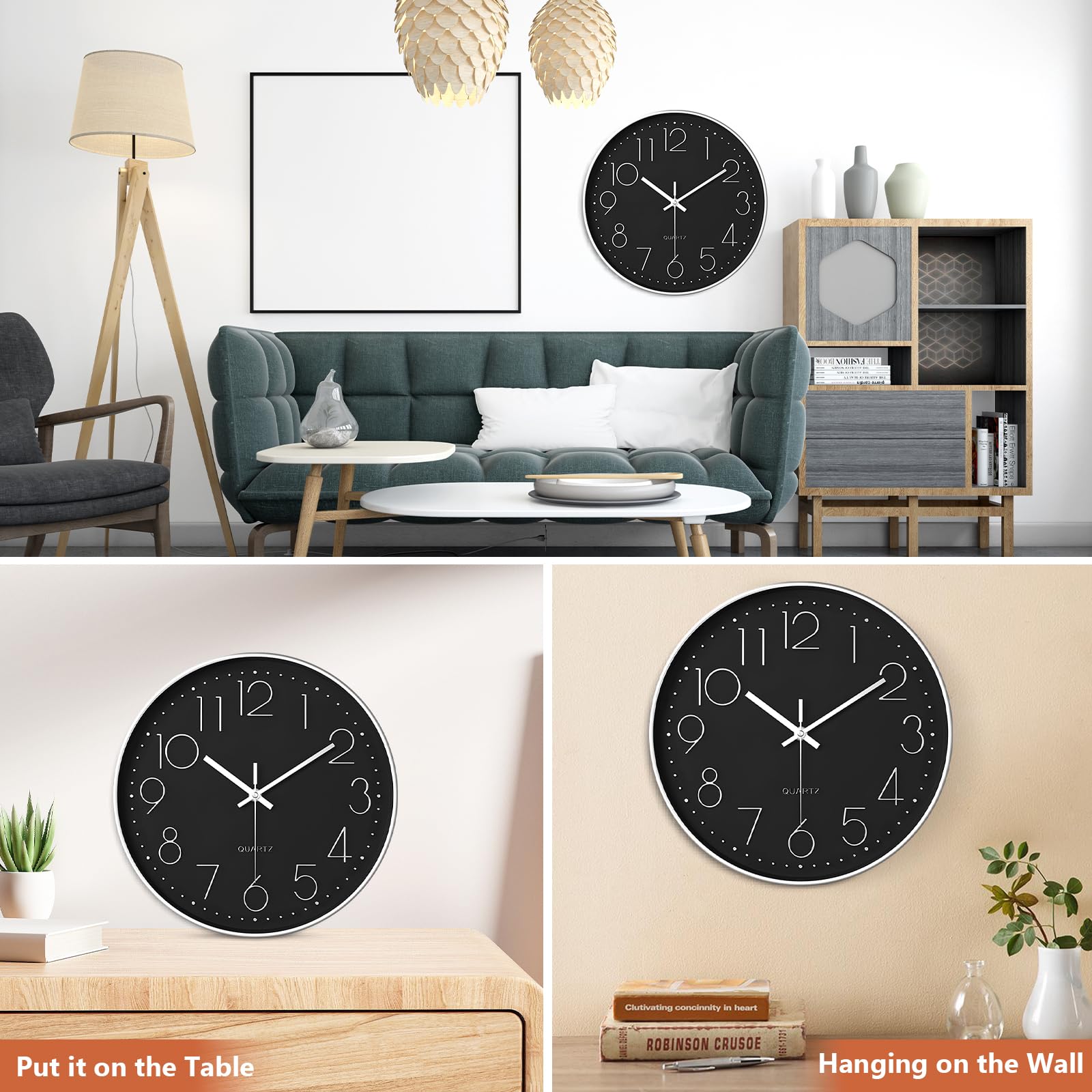 Matériaux de haute qualité]Pendules murales murale silencieuse 12 pouces / 30 cm de diamètre, L'horloge murale cuisine est faite de verre anti-buée de... 🕓【Facile à installer】Il vous suffit d'accrocher l'horloge murale installée au crochet sur le mur, sans aucune compétence, facile à accrocher dans n'importe quelle scène. 🕓【Design minimaliste】Cadran moderne gris ciment élégant avec de grands chiffres blancs 3D, cadre en plastique robuste et lentille en verre facilitant le nettoyage. Horloge Murale Originale Horloge Murale, 30CM 12 Pouces Moderne Horloge Murale Silencieuse Blanc Caractere Noir 96902945 Décoration Murale Minimaliste 🕓【Matériaux de haute qualité】Pendules murales murale silencieuse 12 pouces / 30 cm de diamètre, L'horloge murale cuisine est faite de verre anti-buée de haute qualité avec une haute transmission de la lumière est faite de ABS de haute qualité. HORLOGE DESIGN - Horloge design idéale pour tous les espaces de vie: salon, chambre, salle à manger, bureau, cuisine, hall d'entrée, etc. Pendule avec système d'accroche à l'arrière pour l'accrocher facilement au mur 🕓【Cadeaux exquis】Horloge murale design moderne Peut être placée dans le salon, la cuisine, la chambre, le bureau, l'atelier, l'école, vous pouvez également l'offrir à la famille ou aux amis comme cadeau pour Halloween, Noël ou l'anniversaire. Horloge Murale Moderne Silencieuse 30cm Design Minimaliste Noir Pour Salon Cuisine Yo à Prix