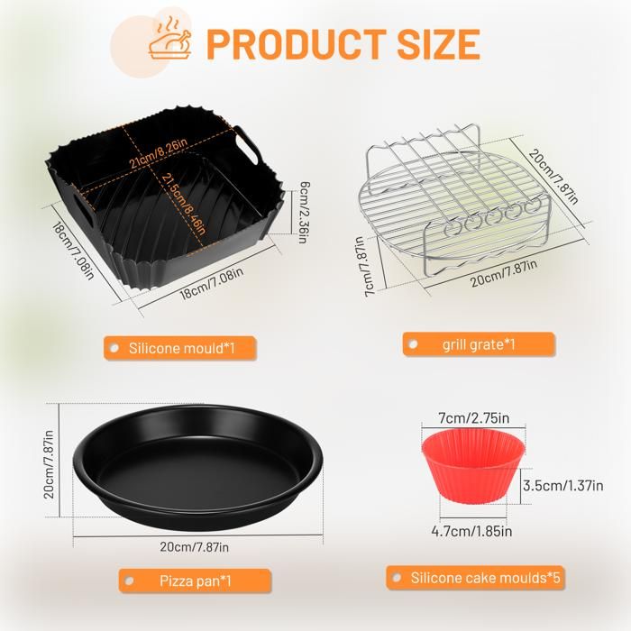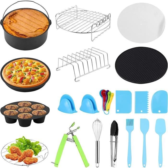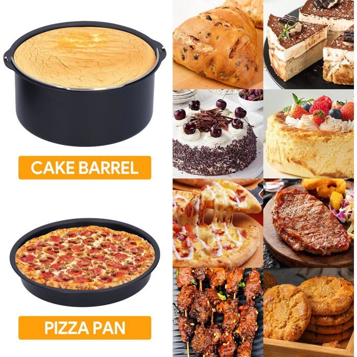 Pièces Détachées Pour Friteuse Accessoires Pour Friteuse à Air Chaud Baril à Gâteau 7 Pouces Moule à Pizza Compatible Avec Toutes Les Friteuses Standard 3.2QT - 5.8 QT Support Antiadhésif Noir Lot De 2 Kit Accessoire Cuisine Saine Boîtes à gâteaux, moule à pizza, 3 pièces/ensemble en acier rond Accessoires de Friteuse à Air pour et Autres Friteuses à Air CarréEs... Le matériau de qualité supérieure le rend plus solide, plus sûr et plus durable. C'est un accessoire idéal pour réaliser des desserts moelleux et délicieux tels que des gâteaux et des brownies. Revêtement antiadhésif qui facilite le retrait des aliments du baril de cuisson ou du moule à pizza ! Faites cuire votre gâteau préféré dans le Cake Barrel, faites cuire de délicieuses pizzas dans le Pizza Pan. 【Largement utilisé】Cake Barrel convient aux gâteaux, au pain, etc. La poêle à pizza est utilisée pour la cuisson des pizzas, des tartes, des omelettes, des quesadillas et plus encore. Compatible avec la plupart des marques de friteuses. Le kit comprend un moule à pizza et un baril à gâteau de 8 pouces en acier carbone de qualité alimentaire. Compatible avec la plupart des marques de friteuses...