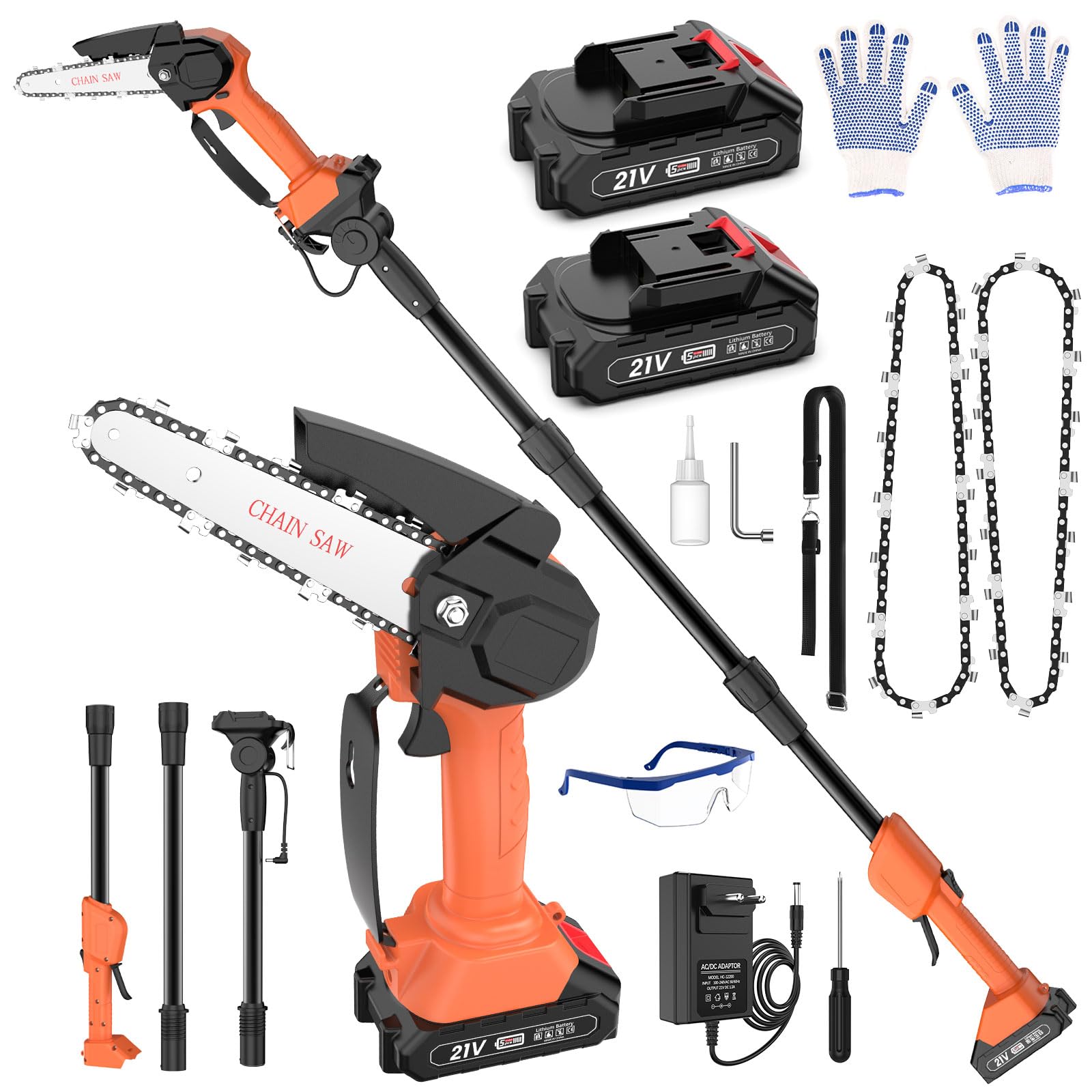 Mini Tronconneuse Perche Élagueuse 6 Et 8 Pouces,avec 2 Batteries 4000 MAh, 4 Longueurs Peuvent être Epissées Extension Jusqu'à 14.1FT Élagueuse - Jardin Tronçonneuse Perche Télescopique Tronçonneuse sans fil 2-en-1, tronçonneuse électrique sans balais avec 2 x 2.0Ah Battery, 4.9-7.5ft Adjustable Pole Saw for Tree Pruning MINI Tronçonneuse,6 Pouces avec 2 Batteries, Scie sans fil avec 2... Offrant une durée de vie prolongée et une efficacité énergétique supérieure, il traverse même les bois durs sans effort. Tête Orientable à 180° et Légèreté: La tête de coupe pivote à 180° pour un accès facile aux branches difficiles. Poids total de seulement 3,4 kg avec une bandoulière réglable pour un confort d’utilisation optimal. Un système 2-en-1 intelligent pour tous vos travaux de jardinage. Sécurité & Utilisation Simplifiée: Système de sécurité à double verrouillage et tension de chaîne sans outil. Huilage automatique pour une maintenance minimale. Design ergonomique adapté à tous les utilisateurs, débutants ou experts. Mini Tronçonneuse à Batterie 6 Pouces, MOWIS Tronçonneuse Électrique...