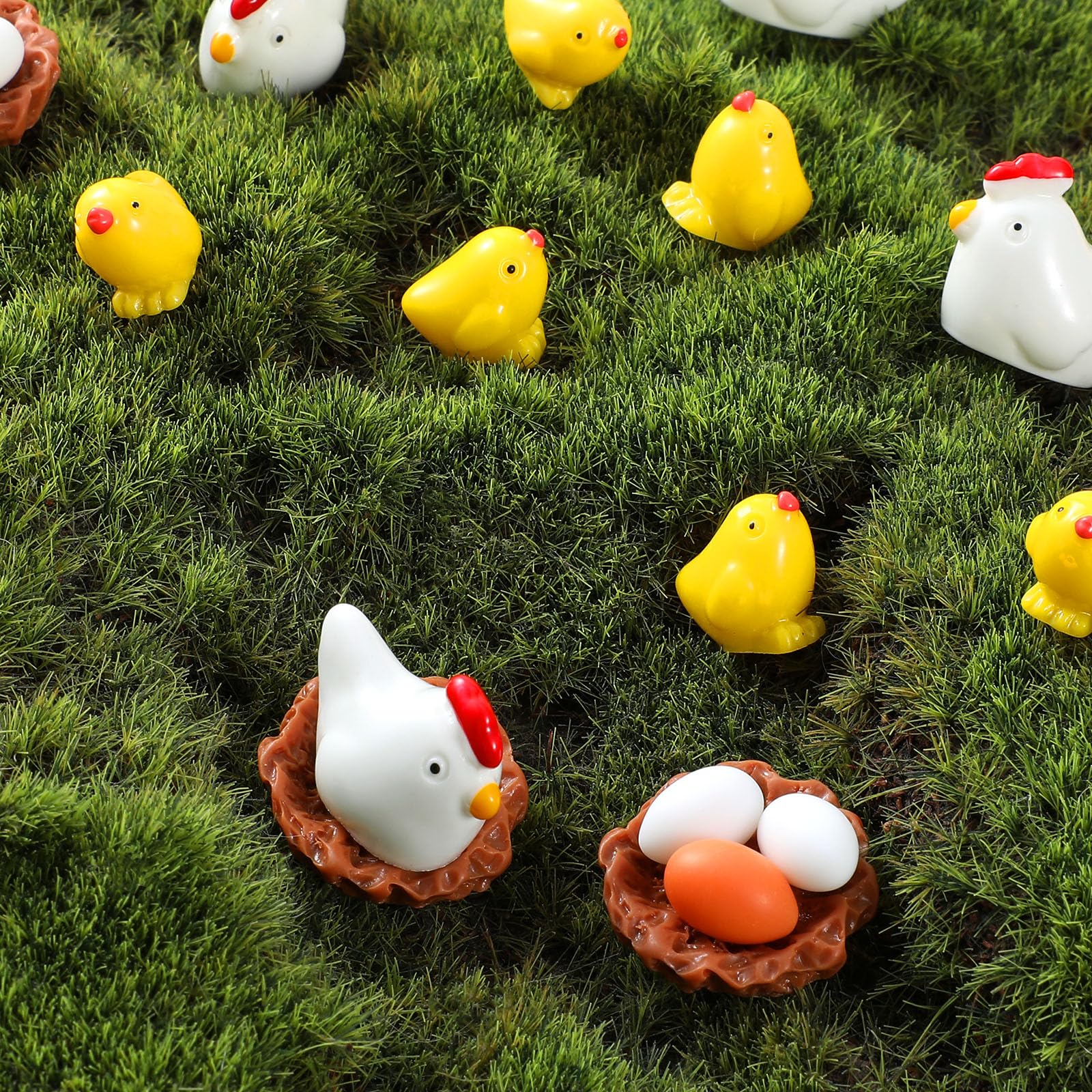CAXUSD 1ensemble Décorations De Pâques Résine Poules Et Poussins pour Et Décorations Miniature poule en cage crèche noël | vente en ligne sur HOLYART Oeuf De Paques Figurine De Poule Miniature En Résine, Animaux De La Ferme Simulation De Poule De Jardin Set Animaux Miniatures Résine Catégorie : petites figurines de famille de poules en résine Couleur : blanc, jaune, marron, orange Matériau : résine insaturée polyester Fonction : décoration Taille des poules blanches : 2,48 × 1,42 × 1,94 cm Taille du poulet jaune : 1,4 × 1,09 × 1,46 cm Taille du nid de poulet : 2,4 × 2,35 × 0,57 cm Dimensions : 0,77 × 0,77 × 1,14 cm Liste d'emballage : 34 pièces × petites figurines de famille de poules en résine Résine de qualité supérieure : ces petites figurines de poussins sont fabriquées en polyrésine durable et présentent des couleurs résistantes à l'eau et à la décoloration. Caractéristiques : Améliorer votre décoration de la maison avec des mini figurines d'animaux, comprend une paire d'ornements en résine de poule et de poussin... Ensemble complet de poules : comprend 34 adorables petites figurines de poules en résine (poules blanches, poussins jaunes, nids bruns et œufs oranges) - Parfait pour présenter des figurines miniatures vivantes de mini poules dans les jardins féériques ou les œufs de Pâques. L'ensemble de décorations de poussin contient des poules blanches (2,48 × 1,42 × 1,94 cm), des poussins jaunes (1,4 × 1,09 × 1,46 cm), des nids (2,4 × 2,35 × 0,57 cm) et des œufs (0,77 × 0,77 × 1,14 cm). Chaque mini poulet en résine ajoute un charme fantaisiste à n'importe quelle scène miniature. Mini figurines de poules polyvalentes : utilisez ces ensembles de figurines de poulet comme petits animaux pour remplir les œufs de Pâques, les accents de terrarium, la décoration de maison de poupée ou les décorations de gâteaux créatives.