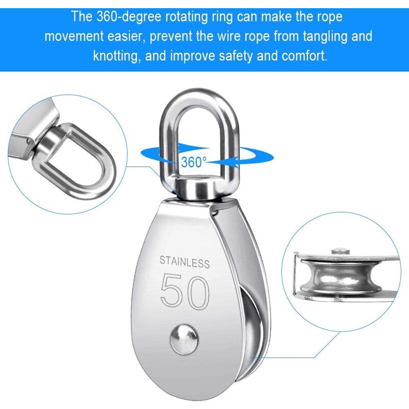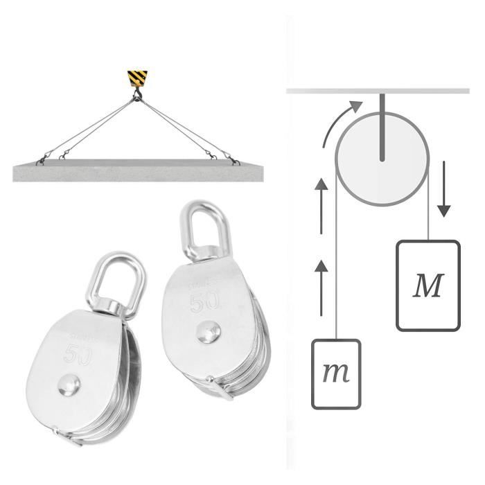 Poulie à Double Roue - DIOCHE - 10 Pièces - Acier Inoxydable 304... Suspension économe en main-d'œuvre : vous recevrez 2 poulies doubles M50, parfaites pour suspendre de lourdes charges afin de réduire la charge et économiser de l'effort. Matériau résistant à l'usure : le bloc rotatif est fabriqué en acier inoxydable 304 fiable, durable, résistant à la rouille, à l'usure, à la corrosion, adapté pour une utilisation avec des cordes dans des applications intérieures et extérieures. Poulie Traction Corde Bricolage Bloc De Poulie, 0,3 Tonne, Chargement De La Poulie De Roue De Ligne De Poulies Double Levage M50 Le rouleau à roulement lisse offre une excellente traversée de ligne sans tremblement ni nœud ou colmatage de la corde., 5., APPLICATION LARGE: Les poulies de levage de traction sont largement utilisées dans les applications de traction de suspension de corde ou d'autres outils telles que le levage de corde, le serrage de tente, les projets de bricolage à domicile, les systèmes de poulie pour chien, la manipulation d'objets, les cordes à linge, le chargement de machines, les grues, le levage industriel et d'autres domainesSpécifications:Type d'article : Palan à double poulie de levageMatériau : Acier inoxydablePortée de charge unique : 400 kg / 881,8 lb (environ)Spécification : M50Type : Type UListe des colis:2 poulies de levage doubles. Bloc De Poulie Double M50, Chargement De 400 Kg, Rotatif À 360 Degrés, Résistant À La Corrosion, Polyvalent, Levage, Bloc De [u6181] Moustiquaire de fenêtre L125 x H145 cm en aluminium laqué blanc - Recoupable en largeur et hauteur 1., Suspension économe en main-d'œuvre : vous recevrez 2 poulies doubles M50, parfaites pour suspendre de lourdes charges afin de réduire la charge et économiser de l'effort., 2., CHARGE DE 400KG: La capacité de charge maximale de chaque poulie est de 400kg, adaptée aux cordes, câbles et fils d'un diamètre allant jusqu'à 12mm3., Matériau résistant à l'usure : le bloc rotatif est fabriqué en acier inoxydable 304 fiable, durable, résistant à la rouille, à l'usure, à la corrosion, adapté pour une utilisation avec des cordes dans des applications intérieures et extérieures., 4., Design rotatif : la roue de bloc est conçue avec un anneau pivotant en haut pour pivoter à 360 degrés. Poulie Bloc De Poulie Pivotant À Roue Unique En Acier Inoxydable M50