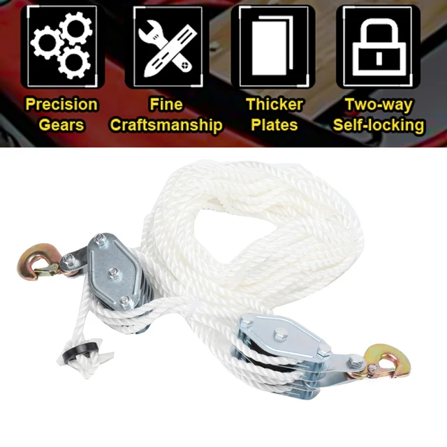 Palan Manuel 4400 Lb Ratio 8:1 Système De Poulie De Palan à Corde - Mxzzand - 4400lb - 8:1 - Acier équipement Fitness Handicap Ce système de poulies à palan permet de soulever des objets lourds avec facilité, nécessitant 8 fois moins de force grâce à son rapport d'amélioration. Il est renforcé des deux côtés pour garantir stabilité et sécurité lors des manœuvres. Un palan est manuel, électrique, pneumatique ou hydraulique MAG Poulie de levage à corde simple en acier haute résistance (1 tonne 【100% Satisfaction 】Nous promettons à chaque client une satisfaction d'achat de 100%, contactez-nous si vous avez des questions sur votre achat. Poulie De Câble Poulie De Corde À Linge Roue De Poulie Pour Le Levage... Si le système de poulie d'entraînement ne parvient pas à vous satisfaire, faites-le nous savoir immédiatement afin que nous puissions vous envoyer un remboursement complet de l'achat. Le système de poulie de palan à câble pour charges lourdes est fabriqué en acier allié, avec une haute résistance, une haute ténacité, une résistance à l'usure, une résistance à la corrosion, une 【Wide Application】Le système de poulie à bloc et palan est pour les athlètes, les personnes handicapées ou les personnes ayant des problèmes de dos, peut également être utilisé pour d'autres applications, telles que la chasse, la navigation de plaisance, le levage, les garages, les animaux de compagnie, la coupe d'arbres, les lofts diy, etc. 【Heavy Duty】Le système de poulie à moufles avec boîtier galvanisé antirouille, rouleau en nylon avec crochet de câble de levage forgé, antirouille, que le boîtier en plastique ; le tire-câble en nylon solide garantit qu'il ne se brisera pas ou ne sera pas endommagé dans les conditions les plus difficiles.
