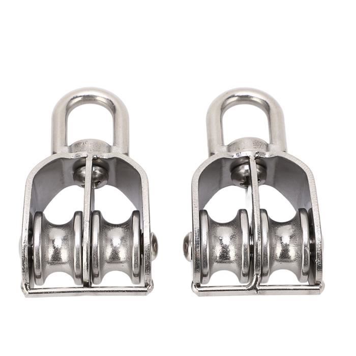 Poulie Levage Camping Poulie à Double Volant D'inertie En Acier Inox... – Grandado Bloc Poulie Pivot 360 Degrés Bloc de poulie à pivot unique OEM 2pcs M25 et 3pcs mousqueton mousqueton avec verrouillage à vis pour kits d'escalade Présentation de notre poulie en acier inoxydable durable, un outil essentiel pour vos aventures de camping et de randonnée. Caractéristiques Fabriqué en acier... Acier inoxydable : principalement fabriqué en acier inoxydable de qualité supérieure, le bloc de poulie est également antirouille et très pour une utilisation prolongée. Facile à installer : livré avec une taille compacte et un poids léger, le bloc de poulie permet de terminer rapidement l'installation. Spécification: Type d'article : poulie double. Utilisation étendue : peut être appliqué de manière flexible au camping, à la randonnée, à la pêche, aux équipements, au fitness, aux roues suspendues, à l'alpinisme, etc. matériel: acier inoxydable Capacité portante du bloc de poulie unique : env. Liste des paquets: 2 x poulie double Pivotement libre : Bloc de Poulie Double, permet un pivotement libre à 360 degrés, le bloc de poulie assure une transmission plus fluide sans emmêlement, sûre et stable. Pivotement libre : Bloc de Poulie Double, permet un pivotement libre à 360 degrés, le bloc de poulie assure une transmission plus fluide sans emmêlement, sûre et stable. Robuste en travaux : Poulie de levage, grâce à la structure robuste, la roue à poulie pivotante a une grande capacité portante jusqu'à 150 kg, idéale pour les objets lourds. Utilisation étendue