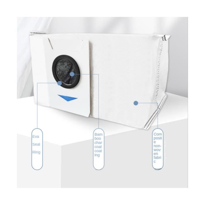 * Il est plus pratique de changer après utilisation, éliminant le besoin de nettoyer la serpillère. * La couche de ventilation du sac à poussière filtre différents niveaux de poussière et de débris pour fournir une capacité et une durabilité maximales. Contenu de l'emballage : 8 sacs à poussière., 4 chiffons de nettoyage. * Le chiffon a une bonne douceur, tout en nettoyant la saleté, il protège également le sol contre les rayures. Pour T20 Omni/X1 Omni/X1 E Omni, sacs à poussière, chiffons de Videz le réservoir rapidement et efficacement sans libérer de poussière nocive dans l'environnement. * Lorsque le robot fonctionne, veuillez nettoyer et essuyer le sol pour le rendre aussi propre que neuf. Deebot T20 OMNI : un aspirateur Ecovacs pour des sols propres en... [Rappel des tailles] Vous vérifiez la compatibilité de ces sacs avec votre modèle de robot d'aspiration E avant de commander. D etails : * *Fabriqué en matériau. * Convient pour Deebot pour T20 pour Omni / pour X1 pour Omni / pour X1 E pour robot d'aspiration Omni. Sacs à Poussière Deebot Sacs à Poussière Antibactériens, Pour Aspirateur Robot DEEBOT T30 PRO Omni T30 Omni Boite De 3 Accessoire Dorigine Blanc 87066916 Sacs Aspirateur Robot Kit D'Accessoires Pour Ecovacs Deebot X2 Omni Aspirateur Robot, Pièces... Filtrage de la poussière de qualité supérieure : conçus pour piéger 9 % des fines particules de poussière, ces sacs aident à maintenir un environnement de vie plus sain et à protéger les performances de votre aspirateur.