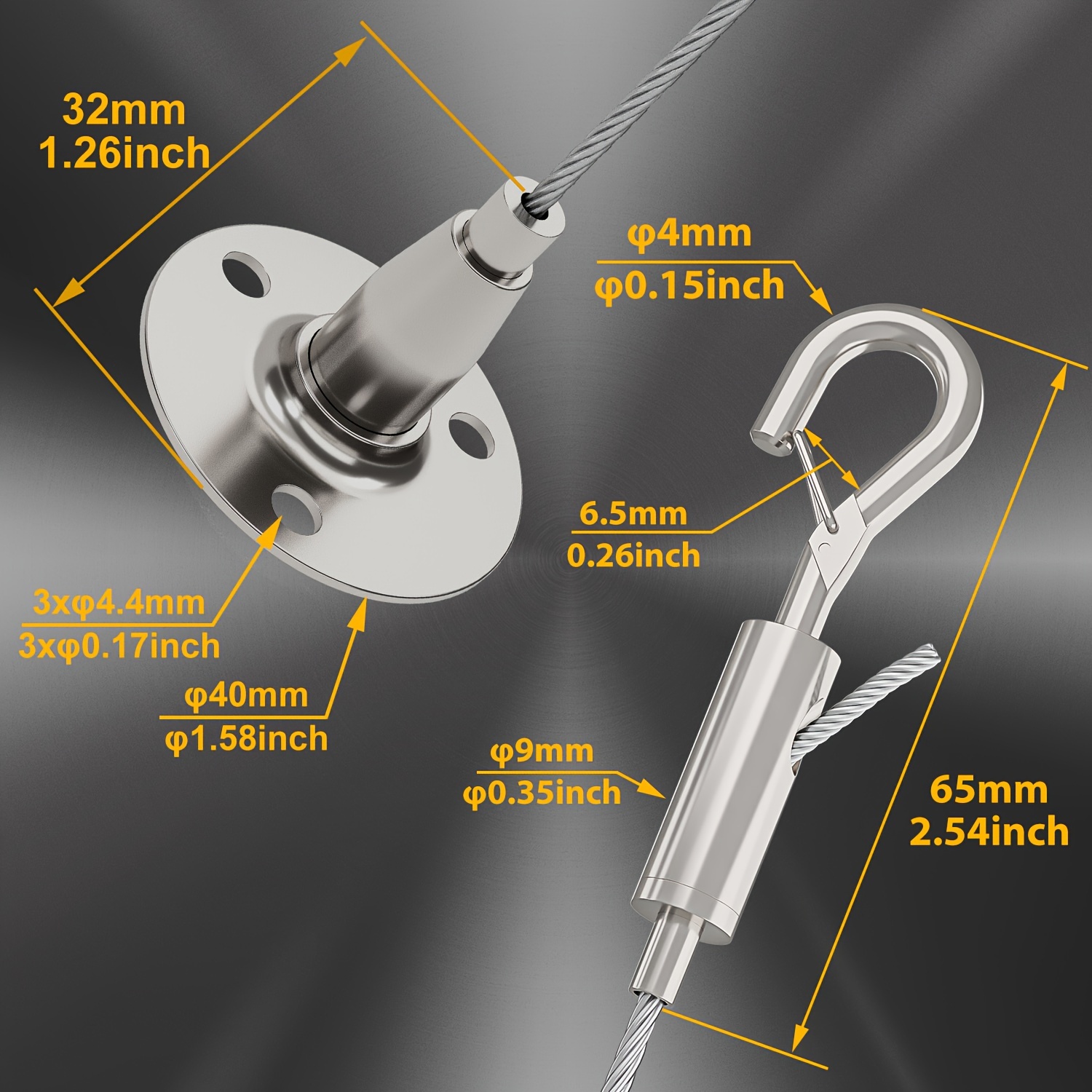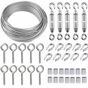 Câble Sécurité 30kg 2pcs Câble Métallique En Acier Inoxydable Pour * Avec Oeillets Et Crochet 2 Mètres De Corde En Acier Inoxydable équipement De Suspension Corde Sans Percer Ruesious corde en acier inoxydable à suspendre kit La conception à double crochet vous permet de fixer rapidement des objets ou de connecter des éléments sans avoir besoin d'outils supplémentaires Le matériau en acier inoxydable le rend adapté à une utilisation en intérieur et en extérieur,garantissant la stabilité et la durabilité du produit Kit de suspension de corde en acier inoxydable 304, corde en acier... [Utilisation pratique] : ces câbles métalliques sont conçus pour être simples et faciles à utiliser. [Capacité de charge élevée] : ces câbles métalliques ont une capacité de charge élevée, avec une capacité de charge maximale de 30 kg. Que ce soit pour fixer des objets ou à d'autres fins, ces câbles métalliques peuvent répondre à vos besoins La longueur du câble métallique peut être ajustée manuellement, vous permettant de l'utiliser de manière flexible dans différentes situations