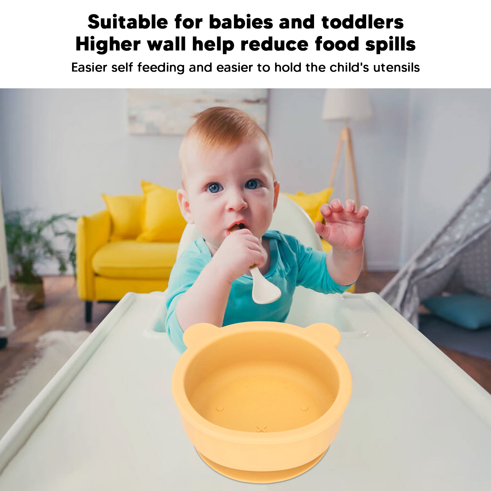 Bol D'apprentissage Auto-alimentation Tout-petit Bol En Silicone Pour Bébé, Bol En Silicone De Qualité Alimentaire Pour Tout-Petit Bol Pour Bébé Dessin Animé Fortement Recommandé Bol Silicone Bébé Ventouse Un bol en silicone avec base anti-dérapante pour rester bien en place. Le couvercle inclus permet de garder le repas bien au chaud ou de conserver les aliments au réfrigérateur Bol en silicone pour bébé - ATYHAO - Jaune - Antidérapant - Robuste CONCEPTION CONVIVIALE POUR LES ENFANTS: Le bol pour bébé de dessin animé convient aux bébés et aux tout-petits, une paroi plus haute aide à réduire les déversements de nourriture, facilite l'auto-alimentation et facilite la tenue des ustensiles de l'enfant. Bol Thermique Bol Pour Bébé Grande Surface De Bol De Contact Sûre Et... Ventouse pratique : le bol pour tout-petit a des ventouses pratiques qui utilisent une petite quantité d'eau pour pouvoir le fixer à la table de la chaise haute ou à toute surface pour éviter les déversements de nourriture et les dégâts. Spécifications:Type d'article : Bol pour bébéMatériau : SiliconeListe des paquets:1 bol pour bébé. Motif ours caricatural : le bol en silicone pour bébé présente un motif ours. 1., Ventouse pratique : le bol pour tout-petit a des ventouses pratiques qui utilisent une petite quantité d'eau pour pouvoir le fixer à la table de la chaise haute ou à toute surface pour éviter les déversements de nourriture et les dégâts., 2., Matériau en silicone : le bol en silicone pour tout-petits est fabriqué en silicone, non toxique, facile à nettoyer, peut garantir la sécurité alimentaire des enfants, plus pratique à utiliser., 3., HAUTE BASSE TEMPÉRATURE RÉSISTANTE: Le bol pour bébé peut résister à des températures élevées et basses de -40 ℃ à +240 ℃, peut être utilisé au micro-ondes et au réfrigérateur, les aliments ne sont pas faciles à gâcher, plus sûrs., 4., CONCEPTION CONVIVIALE POUR LES ENFANTS: Le bol pour bébé de dessin animé convient aux bébés et aux tout-petits, une paroi plus haute aide à réduire les déversements de nourriture, facilite l'auto-alimentation et facilite la tenue des ustensiles de l'enfant., 5., Motif ours caricatural : le bol en silicone pour bébé présente un motif ours.