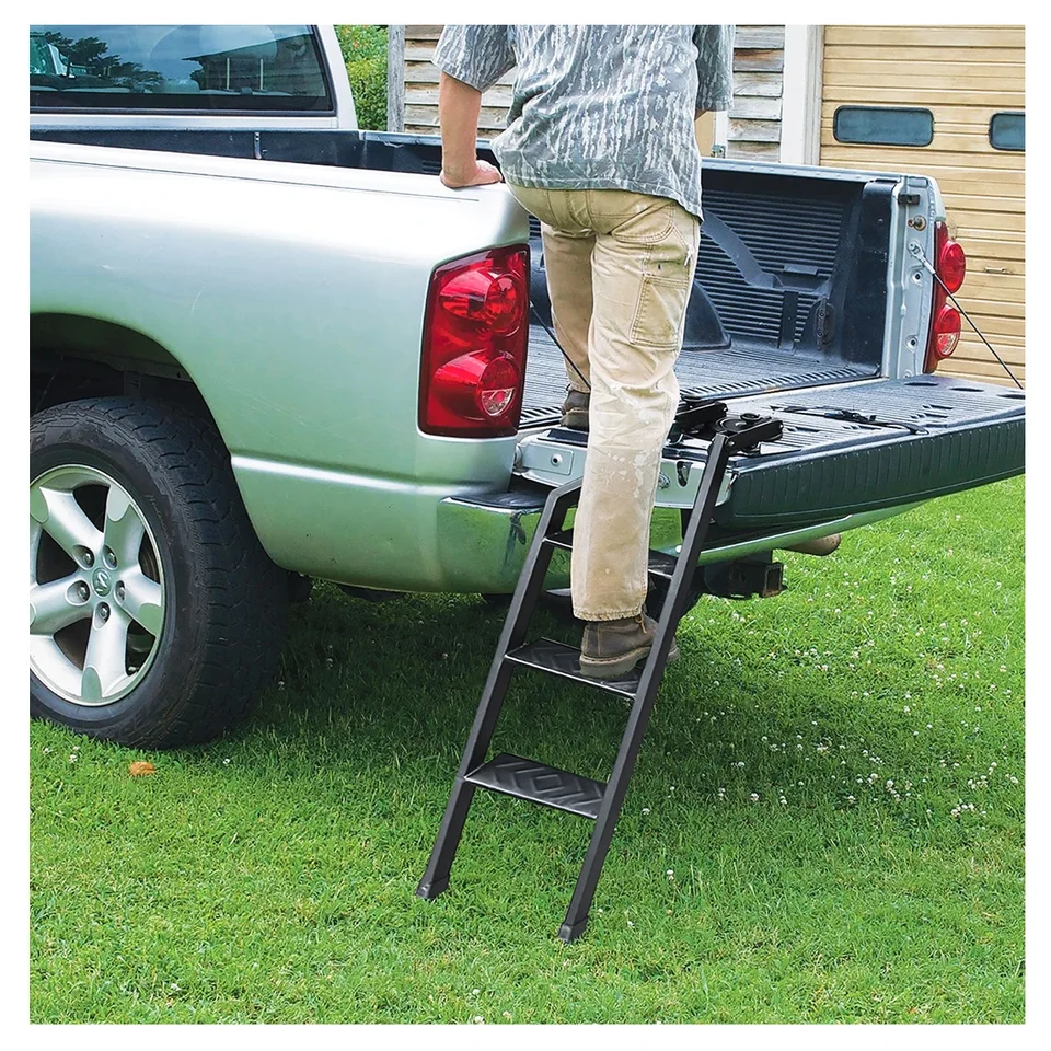 Elle est adaptée pour un hayon de véhicule d'une hauteur de 27,56 à 45,28 pouces. ucks) Poids brut : 4,75 kg., Poids net : 4,51 kg. Grande compatibilité : il convient à la plupart des camions avec des hauteurs de hayon comprises entre 27,56 et 45,28 pouces et offre aux propriétaires de camions pick-up une compatibilité presque universelle et un grand confort. Utilisation : Elle convient aux utilisateurs de pick-up qui doivent souvent charger et décharger des marchandises, ce qui le rend pratique pour entrer et sortir du véhicule et transporter des objets. Porte-échelle pliable avec deux arches rétractables pour hayon de awine, C/adillac Esc/alade Tr. 2 pieds : ils augmentent la friction avec le sol, empêchent l'échelle de glisser tout en amortissant la pression et protégeant les pieds de l'échelle et le sol. Échelle pliable pour hayon de caionnette, échelle avec large pédale... Conception pliante compacte : se replie en douceur sur le hayon lorsqu'il n'est pas utilisé pour assurer un profil propre et éliminer les obstacles, ce qui permet l'utilisation complète du lit du camion tout en obtenant un accès facile si nécessaire. Détails : Bord lisse : les bords arrondis et lisses augmentent non seulement l'esthétique du produit, mais améliorent également la sécurité d'utilisation. Dimensions du produit : 35,6 x 33 x 87,6-108 cm/14 x 13 x 34,5-42,5 pouces Dimensions de l'emballage : 63 x 39 x 7 cm / 24,8 x 15,35 x 2,76 pouces Contenu : 1 échelle arrière. échelle De Hayon Pour Pick-up Échelle De Hayon Pour Camion Pick-up, échelle De Hayon Pliable Accessoire Pick-up Chargement Déchargement Hayon élévateur rabattable avec capacité 750 kg Aide au hayon : conçu comme un outil de soutien fiable, ce support de hayon dispose d'une structure d'échelle solide qui réduit efficacement la charge physique lors du chargement et du déchargement, ce qui rend l'accès au lit du camion plus facile et plus sûr à chaque utilisation.
