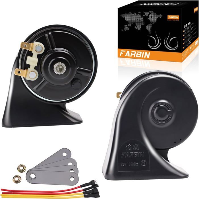 12V double ton trompette Super fort klaxon d'air électrique escargot pompe électrique sirène Klaxons Auto Klaxon De Train - 300Db Pour Camions - Klaxon D'Escargot Électrique À Klaxon étanche Voiture Plug-and-play, montage direct, installation facile. Aucun assemblage requis. Composants électriques de qualité supérieure. Dissipateur thermique et capacités de charge améliorés. Seul le contenu de l'emballage ci-dessus, les autres produits ne sont pas inclus Installation : les klaxons de voiture étanches n'ont pas besoin d'être coupés ou épissés, pour rendre les installations rapides et faciles, excellent comme remplacement pour vos anciens ou cassés. Klaxon De Train 300Db Pour Camions, Klaxon D'Escargot Électrique À Double Klaxon, Kit De Klaxon... Performance : ce son clair peut rendre votre klaxon de voiture puissant et avertir les voitures et les piétons environnants, afin d'éviter les accidents de la circulation et d'améliorer votre sécurité de conduite. Conception : ces klaxons de voiture électriques à air étanches utilisent de bons contacts en tungstène avec une faible génération de chaleur, son son est brillant et net, avec une pénétration diatonique élevée et basse et une durabilité longue durée.