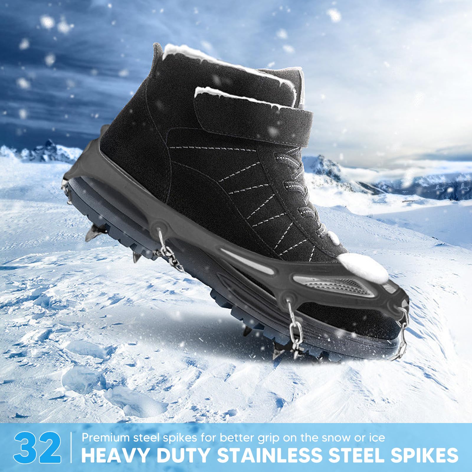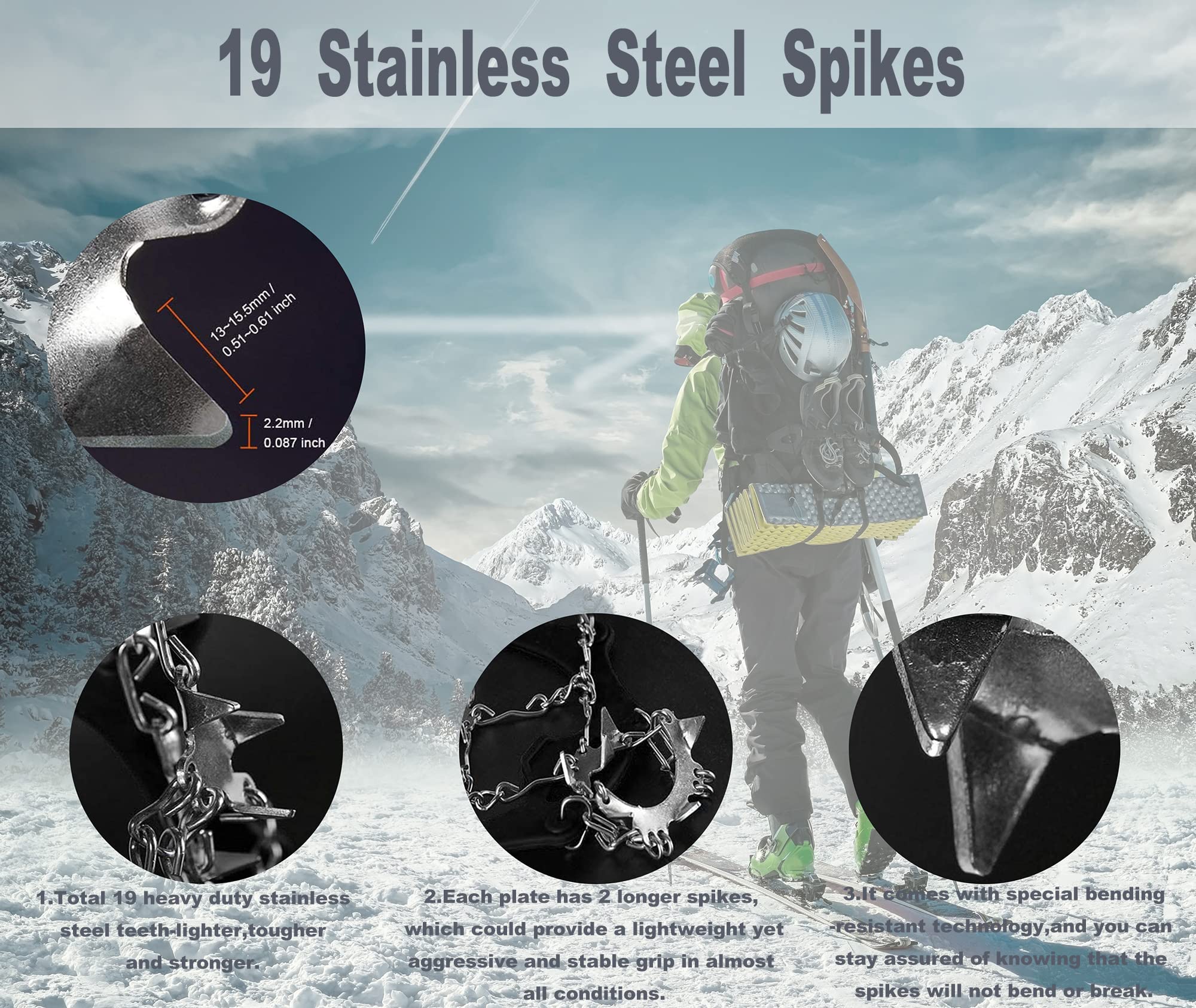 Fixez fermement les crampons neige et glace et de neige sur différents types de Chaussures, en veillant à ce qu'elles ne se détachent pas, ne se déplacent pas pendant la marche, améliorant votre sécurité lors de la marche dans des environnements glacés et enneigés. Crampons de traction à 32 pointes en acier inoxydable antidérapant pour bottes et chaussures de randonnée faciles à utiliser pour la traction en plein air... En outre, nous fournissons un sac de stockage pour les crampons. 32 Dents Crampons à Neige: Chaque crampons neige et glace est équipée de 32 clous en acier inoxydable résistants, vous offrant une stabilité. Crampons Neige Et Glace Crampons à Glace Crampons Pour Chaussures De Neige Avec 24 Pointes En Acier Inoxydable Pour La Marche, Le Jogging, L'escalade Et La Randonnée Sangles Velcro Réglables Universelles Les crampons anti verglas sont compactes, ce qui les rend faciles à transporter. Les clous en acier inoxydable et les élastomères thermoplastiques résistants au froid ont une grande résistance et une grande durabilité, fournissant la traction dont vous avez besoin pour toutes vos activités hivernales, que vous explorez des sentiers de neige ou que vous vous déplacez. Facile à Porter et à Transporter: Les crampon neige avec design tout - en - un, ce qui rend facile à mettre et à enlever, avec des étapes simples, même les débutants peuvent facilement commencer. Lorsque vous ne les utilisez pas, vous pouvez les mettre dans le sac de stockage pour un stockage facile et sans salir votre sac à dos. Large Gamme D'application: Ce crampon neige pour chaussure convient à divers types de chaussures telles que des chaussures de randonnée, des chaussures de neige, des chaussures de sport, des chaussures décontractées, etc. Il peut rester flexible à des températures aussi basses que -40 degrés Celsius. Il a une bonne résistance aux déchirures, empêche efficacement la cassure, améliore la durabilité de la crampons anti verglas. Les crampons agressifs et les sculptures empêchent les glissades et les chutes sur la glace, la neige et les pavements humides. Anti Glisse Chaussure Taozoey... Les couvercles de chaussures Crampons sont fabriqués en élastomère thermoplastique (TPE), qui est plus élastique et flexible que le silicone, et ne se fissure pas facilement ou ne se casse pas. Que ce choix idéal pour la randonnée, l'escalade de montagne enneigée, la chasse et la pêche sur glace. Crampons pour Chaussures de Randonnée, 32 Pointes en Acier