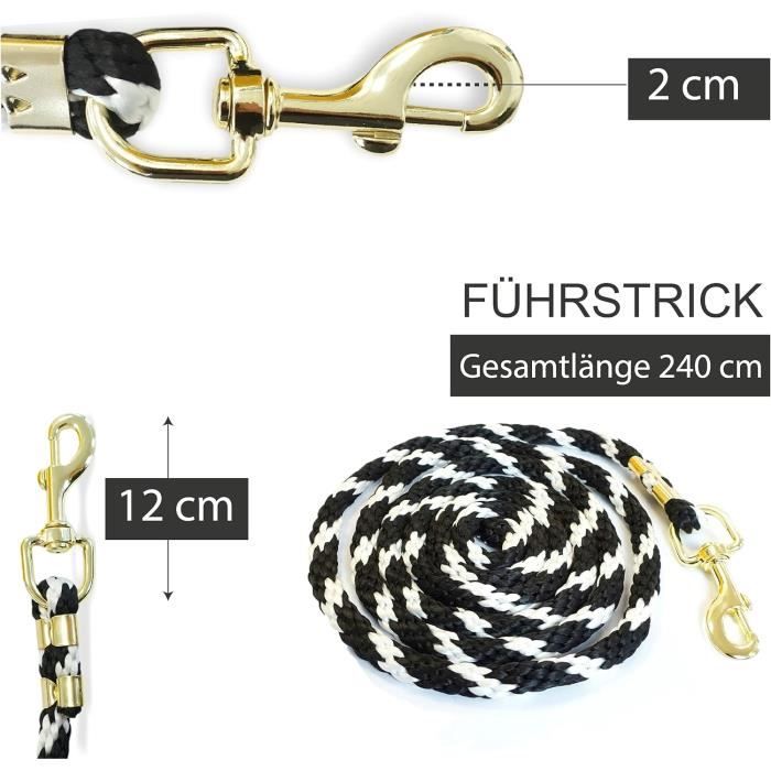 Longe de travail lourde cheval - Longueur 8m | Three Horses Ensemble licol et longe pour cheval Horka EP Crystals & Pearls - royal... Longe 1.8m Cheval Mousqueton Sécurité Renforcé Longe Pour Cheval 2,4 M - Corde De Guidage Élastique, Mousqueton Renforcé, Pour Poney/Âne Longe Cheval 2.4 M Accessoire équitation Entraînement Le crochet pivote à 360° pour garantir que la corde reste démêlée et facile à manipuler à tout moment., 4., 【Conception bicolore】: tissée à la main avec une apparence bicolore élégante, cette corde de plomb combine fonctionnalité et mode, ajoutant une touche d'élégance à l'équipement de votre cheval tout en conservant son aspect pratique. Nous garantissons que le mode d'affichage est identique à celui présenté sur les photos., 2., Veuillez prévoir une légère différence de dimension de 1 à 2 cm en raison de différentes mesures manuelles. Longe Pour Cheval U2013 Corde De Fixation Dans Différents Designs... Spécification: Poids : 200 g Matériau : corde en coton, métal Couleur : Noir gris, violet noir, turquoise noir, rouge noir Taille : longueur 1,8 m/70,9, environ 6 pieds, diamètre de la corde environ 1,5 cm/0,6, crochet en métal lourd 8 cm x 2,4 cm/3,2 x 1, ouverture maximale du clip environ 1 cm/0,4 Liste de colisage: 1 * Corde de laisse pour cheval Remarques :1., En raison des différences entre les écrans, la couleur réelle de l'article peut être légèrement différente de celle de la photo. 【Doux Et Confortable】 : Fabriquée à partir de coton de qualité supérieure et fabriquée à la main, la corde de plomb offre une prise douce mais robuste qui est douce pour vos mains même lors d'une utilisation prolongée. 【Service Après-vente】: Si vous rencontrez des problèmes lors du processus d'achat et d'utilisation, veuillez nous contacter et nous vous aiderons à les résoudre dans un délai d'un jour ouvrable. Le crochet pivote à 360° pour garantir que la corde reste démêlée et facile à manipuler à tout moment.