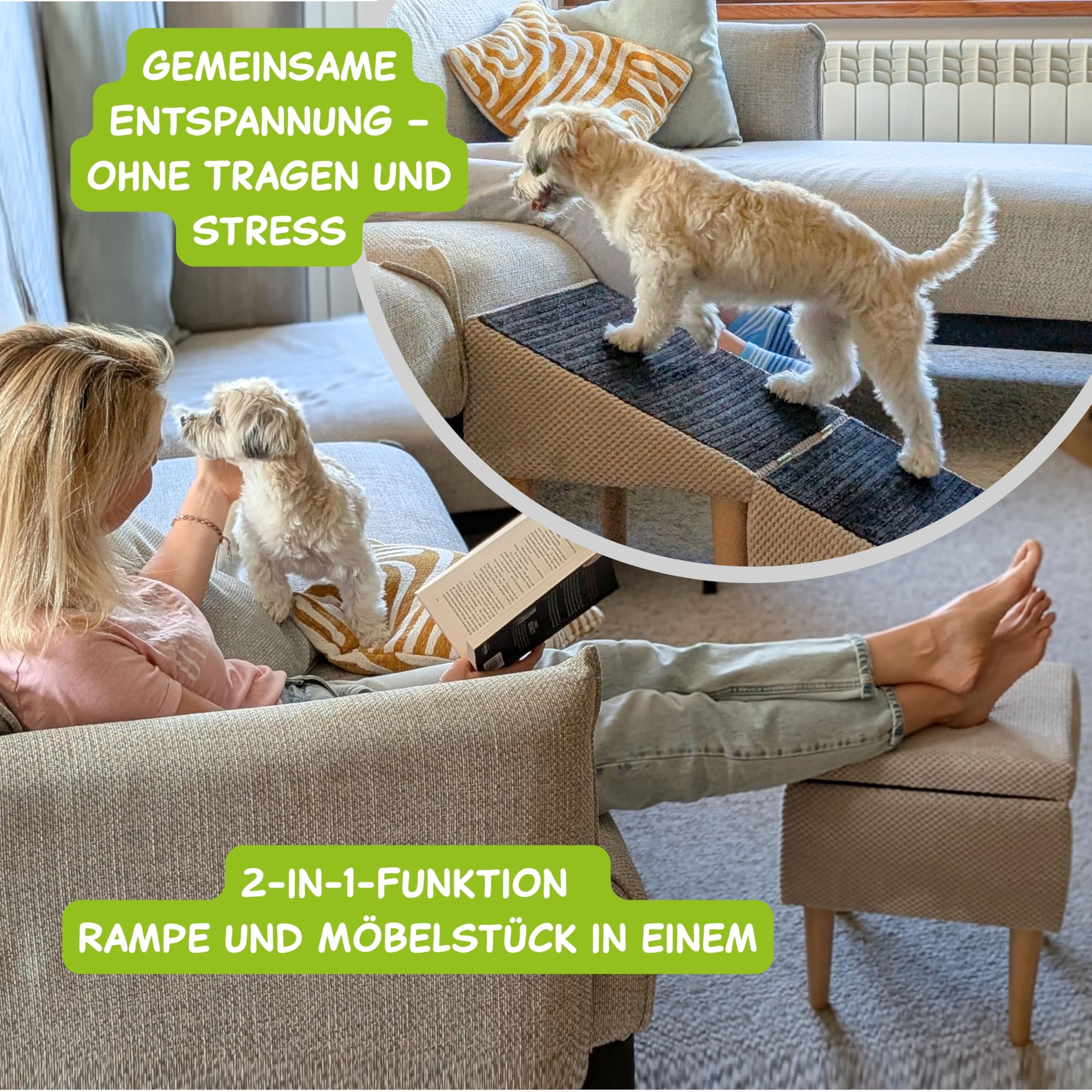 Marches Antidérapantes Animaux Siège & Escalier Pour Chien Antidérapant 2 En 1 - Rampe Et Marches Pour Escalier Chien Escalier pour chien pliant à 4 marches en plastique charge 60kg 64 x 39 x 49 cm feutre doux chiens et chats beige Rampe D'Escalier Pour Chien 3 Marches Échelle Pour Chien Éponge Haute... Grâce à sa construction robuste, votre animal profite d’un appui stable et sécurisant, même après des années d’utilisation. La surface antidérapante et douce assure une montée en toute confiance, notamment pour les animaux âgés, en convalescence ou souffrant d’articulations sensibles. Ce mobilier pliable 2-en-1, à la fois pratique et esthétique, s’intègre harmonieusement à votre intérieur. Description du produit Offrez à votre compagnon à quatre pattes le confort et la sécurité qu’il mérite avec cet escalier pour chien et chat, pensé pour faciliter l’accès au canapé, fauteuil ou lit. CONFORT POUR LES ARTICULATIONS : Surface douce et moelleuse agréable pour les pattes – protège les articulations sensibles, idéale pour animaux âgés ou après opération. ÉLÉGANCE & FONCTIONNALITÉ 2-EN-1 : Escaliers pliables au design moderne – se fond dans votre mobilier (canapé, fauteuil, lit) tout en aidant votre animal au quotidien. ENTRETIEN FACILE & HYGIÉNIQUE : Ne retient pas les poils, ne bouloche pas et se nettoie d’un simple coup de chiffon – gain de temps, idéal pour les intérieurs soignés. Nos escaliers pour chiens pliables 2-en-1 multifonctionnels ofent un parfait équilibre entre sécurité, confort articulaire et gain de place, pensés pour les foyers modernes avec animaux
