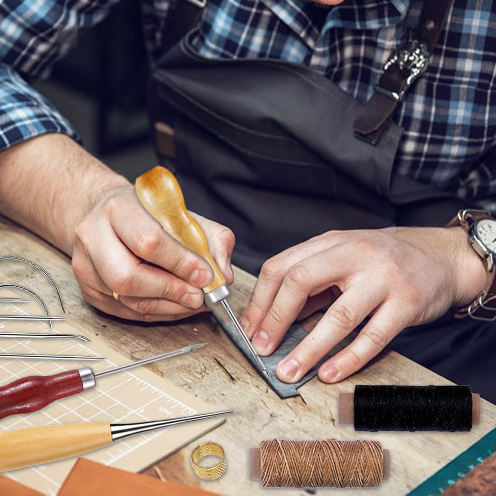 Fil à Coudre Pour Cuir, Fil Ciré Plat, 5 Pièces - 30 M De Long, Pour L Cire Plat 5 Pieces 30 M De Long Pour L Artisanat Du Cuir La Couture La Reliure Le Bricolage 2 rouleaux de fil ciré : le fil ciré pour cuir est disponible en deux couleurs : noir et marron foncé. Réparation Cuir Kit Couture Cuir,Fil Ciré Pour Cuir Marron Noir Avec Aiguille Cuirs Outils Réparation Cuir Pour Sacs Et Canapés Un ensemble complet d'accessoires pour répondre à vos besoins en matière de couture et de réparation du cuir. LMDZ – Kit de couture du cuir, outils de couture à... – Grandado Fil ciré - AIHONTAI - Marron - Outils de réparation - Bricolage... Aiguilles à coudre le cuir : le kit de couture du cuir comprend des aiguilles de différentes longueurs et de différents types, telles que des aiguilles longues et des aiguilles courbes. Ces fils sont fabriqués à partir de fibres de polyester et recouverts d'une quantité appropriée de cire, ce qui les rend faciles à enfiler. Vous pouvez choisir des aiguilles de différentes tailles en fonction de vos besoins pour obtenir une couture plus précise. Ensemble d'outils pour la couture du cuir : vous recevrez 2 rouleaux de fil à coudre pour cuir (50 mètres par rouleau), 7 types d'aiguilles différents, 1 dé à coudre et 3 bobines avec différentes fonctions. Nos fils sont durables et vous aideront à réaliser vos travaux de couture à la perfection. Caractéristiques techniques : Matériau : fibre de polyester, acier au carbone Couleur : comme indiqué sur l'image Les outils pour le cuir sont indispensables dans la vie quotidienne, parfaits pour les travaux de couture et de réparation.