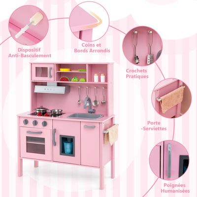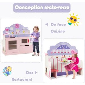 🍳【Espace de rangement suffisant :】Il est conçu avec 3 crochets de suspension pour les ustensiles de cuisine, 3 étagères fixes et 1 étagère supérieure pour les accessoires de cuisine. Le cadre en bois massif peut fournir un temps de jeu de longue durée. 🍳【Excellent cadeau:】Notre cuisine en plein air est spécialement conçu pour les enfants de plus de 3 ans. Ils peuvent tourner les boutons pour faire un « clic » et ouvrir le robinet pour obtenir de l'eau courante. Cuisine Enfant COSTWAY 3 En 1 s Avec 9 Accessoires - Grand Réfrigérateur, Machine à Laver Cuisine En Bois Enfant 🍳【Matériau supérieur en bois de sapin :】Fabriqué en bois naturel, la cuisine est non toxique et inodore. L'ensemble comprend 1 étagère supérieure, 3 crochets de suspension et 3 étagères inférieures pour répondre aux besoins de rangement, ce qui leur permet de cultiver une bonne habitude de tri. Costway Cuisine Enfant en Bois Sapin Réservoir à Eau 700 ML & Robinet 3... Ensuite, votre petit chef pourra profiter du jeu de cuisine avec ses amis. Ils peuvent faire semblant de cuisiner, laver des fruits ou accrocher des ustensiles de cuisine comme un vrai chef. Les coins arrondis protègent la peau des enfants. Cuisine Exterieur Enfant Cuisine Pour Enfant En Bois Double Face Pour Rôle De Cuisinier Et De Client Jeu D Cuisine Jouet Bois Réservoir 700 Ml COSTWAY Cuisine pour Enfant 3-8Ans en Bois Jeu Jouet d’Imitation avec... La hauteur du comptoir de 52 cm permet aux tout-petits d'atteindre facilement divers accessoires.