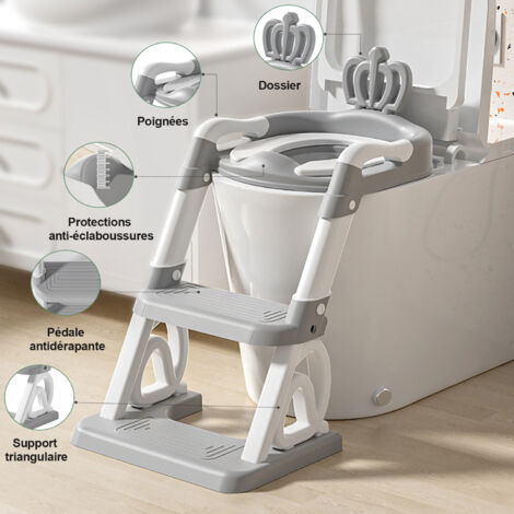 Réducteur WC Enfant, Siege Toilette Chaise Pour L'apprentissage Des Tout-Petits, Coussinet Couleur : argent. Matériau : alliage d'aluminium coussin d'assise en PU. La hauteur d'assise est réglable sur 6 niveaux. Le dossier est réglable en 3 positions. Abmessungen:55x48,5x84-100cm (BxTxH). Hauteur de l'assise par rapport au sol : 42-54cm. Profondeur d'assise : 48,5cm. Nombre maximum d'utilisateurs. Poids de l'utilisateur : 200 kg. - La hauteur de la chaise peut être réglée... Apprentissage Propreté 1-7 Ans YARDIN Siège De Toilette Pliable Pour Enfants Avec échelle Réglable En Hauteur Pot Pour Enfants Pot Bébé Réglable échelle Sécurité 🌈 Matériaux de qualité supérieure : notre pot d'entraînement est fabriqué en polypropylène de haute qualité, respectueux de l'environnement et sûr. 🌈 Flexible et réglable : repose-pieds réglable en hauteur à deux niveaux pour les bébés de 1 à 7 ans, peut supporter jusqu'à 75 kg. YARDIN Siège de Toilette Pliable pour Enfants avec échelle réglable en Hauteur Pot pour Enfants... Notre siège rembourré en polyuréthane est plus doux et plus sûr pour protéger la peau de bébé et s'assurer que votre enfant se sent à l'aise. Par exemple Par exemple, les toilettes en forme de V, en U et en O ne conviennent pas aux toilettes carrées. Le siège de toilette est amovible pour un nettoyage plus hygiénique. Design humanisé : la partie avant est surélevée pour éviter que l'urine du bébé ne fasse des éclaboussures et que le pantalon de bébé soit mouillé.