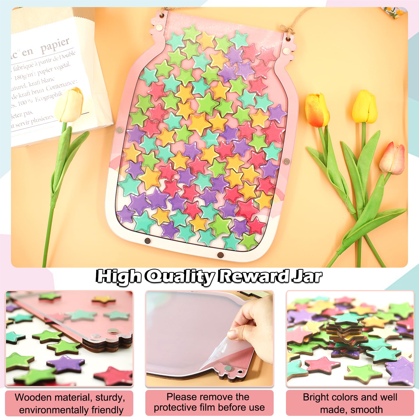 La boîte à récompenses - Outils routines pour la vie quotidienne Tableau de motivation personnalisé / tableau de récompenses enfant... Gestion Comportement Positif Bocaux De Récompense Pour Enfants | Bocal De Récompense Pour Salle De Classe | Bocal De Récompense Avec étoiles, Pot De Récompense En Bois Personnalisé Inspirant Le Bon Comportement Pour Enfants Accessoire Parentalité Positive Matériaux: Ces pots de récompense des enfant sont fabriqués à partir de matériaux en bois de haute qualité. Compact, léger et portable, il s'agit d'un outil interactif qui inspire les étudiants à apprendre et à prospérer Bocal de récompenses pour enfants avec tableau d'entraînement quotidien... Taille parfaite: vous recevez un pot de récompense en bois, 45 étoiles (par ensemble) et un support en bois pour l'écran de table. De vastes applications: Ce pot de récompense spécial est parfait en tant qu'outil de gestion du comportement en classe, encourageant le comportement positif et favorisant la croissance des élèves. Ils sont également idéaux pour les événements de retour à l'école Cadeau parfait: ceux-ci font de grands cadeaux pour les parents pour encourager un comportement positif et l'apprentissage chez les garçons et les filles, ou pour les enseignants pour créer un environnement de classe passionnant et motivant.