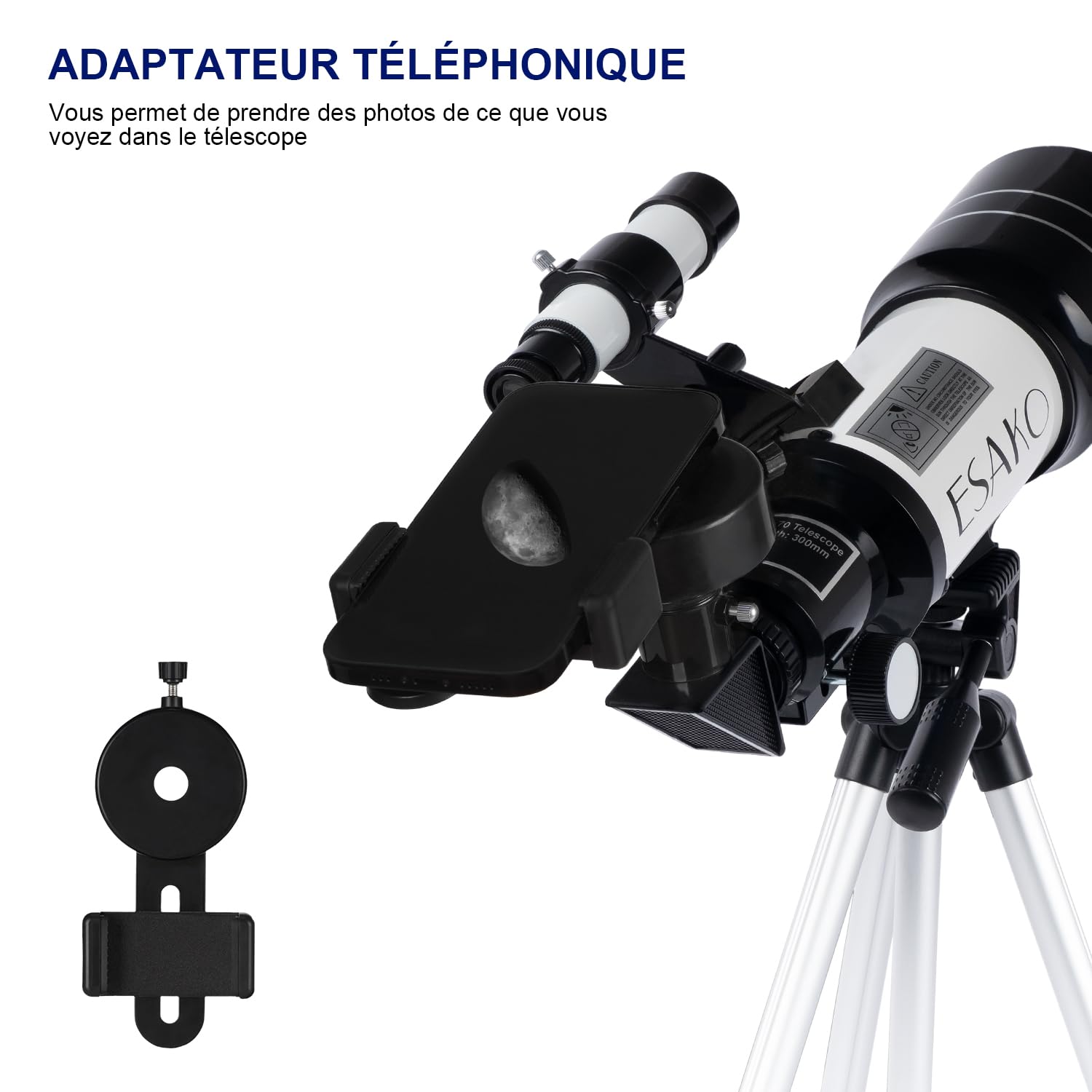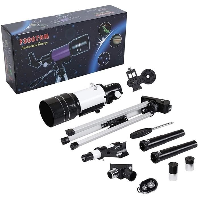 Télescope Grossissement élevé Télescope Astronomique Pour Enfants Et Débutants, Ouverture Télescope Cadeau éducatif Il est équipé d'un objectif à grande ouverture de 70 mm, la distance focale de l'objectif est de 300 mm. Notre télescope peut fournir des vues plus claires et plus lumineuses par rapport aux autres télescopes à petite ouverture GSYNXYYA Télescope Skywatcher télescope astronomique des Enfants avec Vous offre une variété pour chaque situation de visualisation. HZWLF Télescope pour Enfants débutants Adulte télescope réfracteur... Tous les accessoires peuvent être rangés dans le sac, ce qui est pratique pour vous. Grossissement élevé : notre télescope est équipé de 3 oculaires (20 mm, 10 mm, 6 mm) et d'une lentille Barlow 3X. La lentille Barlow triple le grossissement de chaque oculaire. Trépied réglable : le télescope pour enfants peut être réglé verticalement à 180 ° et horizontalement à 360 °, assure une base stable, permet différentes positions de vision avec le trépied réglable, et sans fatiguer vos mains.