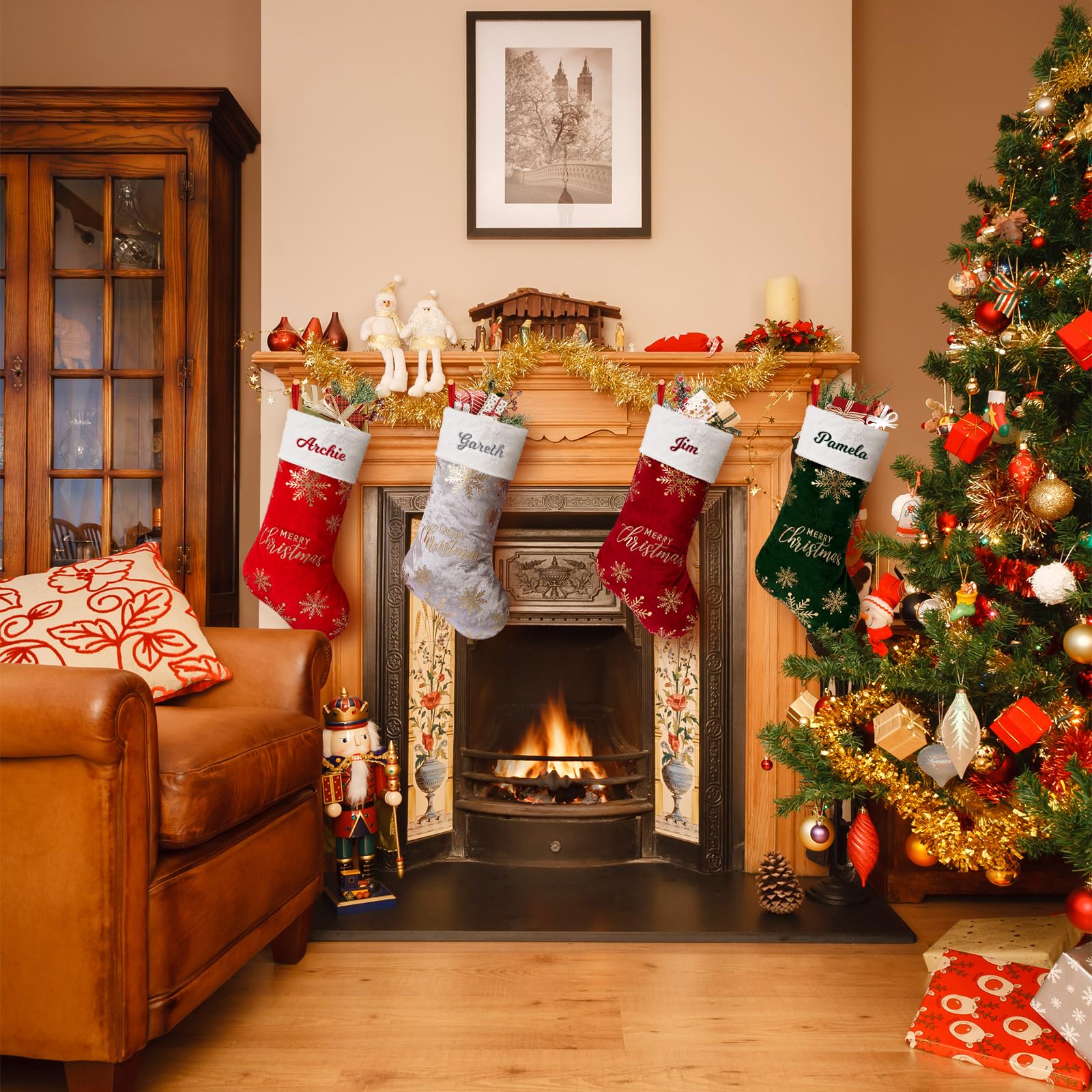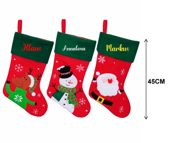 Cadeau Noël Personnalisable Lot De 8 Chaussettes De Noël Personnalisées En Tricot Avec Nom Brodé Pour Enfants, Fêtes Et Famille - 45,7 Cm - Pour Cheminée, Décoration De Fête De Noël (C Chaussette Suspendue 47cm BAS TRICOTÉ AVEC flocon de neige rouge et alphabet créer une atmosphère Custom4U Chaussette de Noel Personnalisé avec Chaussettes de Noël avec Plaque Nominative en Bois: Des chaussette de Noël personnalisée, gravées de noms ou de textes (jusqu'à 12... [Chaussettes de Haute Qualité] : Dimensions généreuses (48 cm de long, 22 cm de large). Une fabrication robuste et durable garantit une suspension sécurisée, avec une boucle de accroche renforcée pour une exposition facile. [Décoration de Noël et Cadeau Festif] : Idéales pour suspendre aux mantels de cheminée, dans les chambres, maisons, fermes, fenêtres, murs, portes, rampes d'escalier ou sur le sapin. [Chaussettes de Noël avec Plaque Nominative en Bois] : Des chaussette de Noël personnalisée, gravées de noms ou de textes (jusqu'à 12 caractères) pour capturer la chaleur de Noël. Le design classique de ces chaussettes initials crée une ambiance chaleureuse et embellit votre intérieur. Cadeaux parfaits pour Noël, Thanksgiving et les fêtes (enfants, animaux, proches) Votre satisfaction est notre priorité absolue Pour personnaliser votre produit il vous suffit de faire un choix parmi notre sélection. Une fois que vous avez choisi la chaussette de Noël qui trônera fièrement dans votre salon, indiquez-nous le prénom ou le message à broder ainsi que la couleur et la typographie