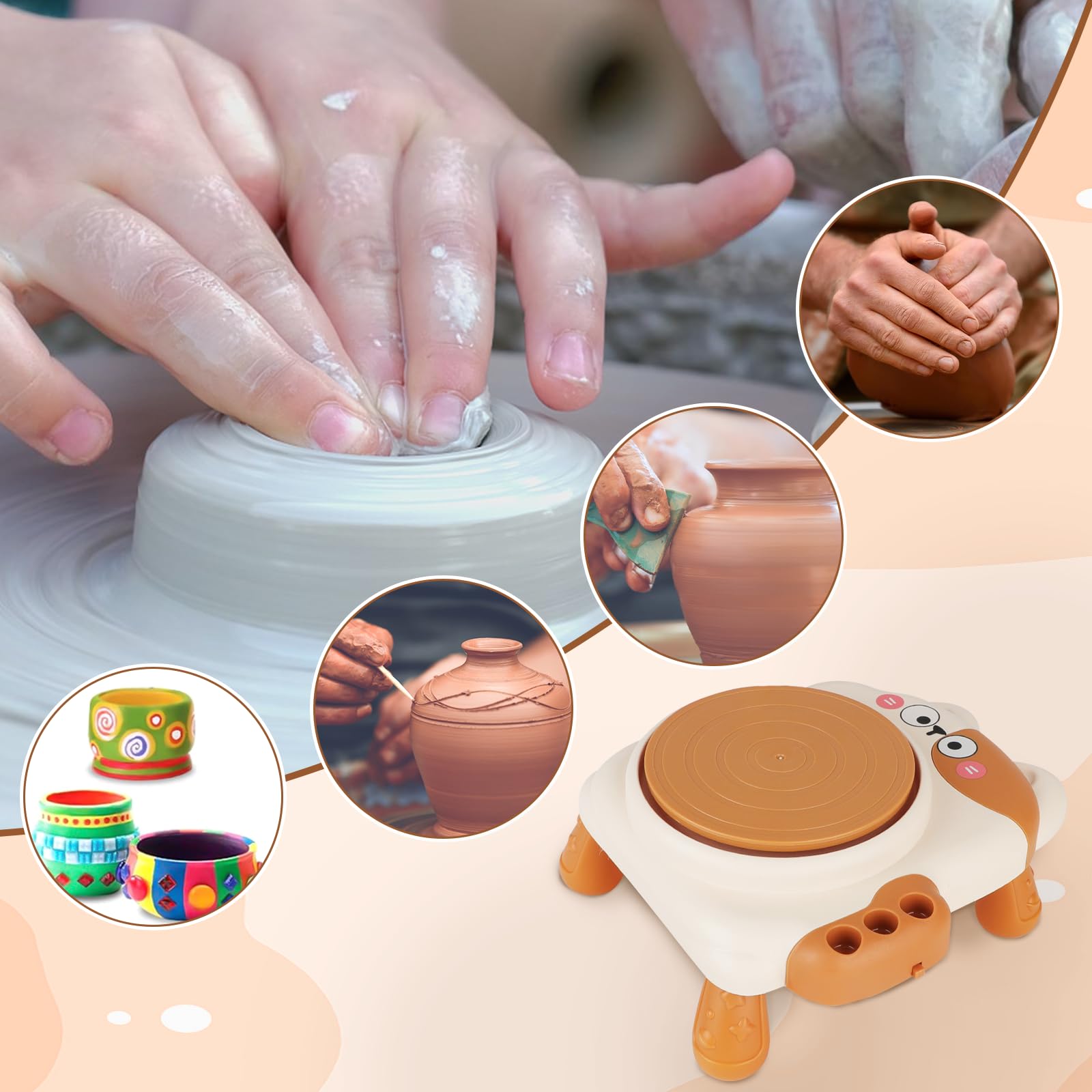 Livre Le guide de la poterie au tour pour les débutants de Julia Claire Weber | Ceram Decor Pas d'eau, pas de cuisson, tout sèche à l'air ! L'utilisation de notre outil de centrage et de nos guides de gabarit permet d'obtenir un excellent résultat, même pour les potiers les plus novices Set Poterie Débutant Argile Outils Kit De Tour De Poterie Miniature Pour Enfants, Kit De Tour De Poterie électrique Créatif Pour Enfants, Machine De Poterie Pour Apprendre Les Compétences Artisanales, Idéal Pour Activité Créative Familiale Encouragez les à plonger dans l'art de la poterie artisanale avec un outil spécialement conçu pour des fins éducatives et interactives. En raison de la différence de mesure manuelle, veuillez permettre une différence de taille de 1 à 3 cm. Tour de Poterie Miniature | Kit de Modelage Argile Débutants | Outil Interactif de Modelage et Peinture pour Débutants École Maison Colonies de Vacants... Spécification:Produit Szie: environ 22x15., 6x10., 5cm / 8., 66x6., 14x4., 13 poucesMatériel produit: ABSCharge: plug-in USBListe des produits:1 * roue de poterie2 * Clay2 * moisissure1 * Règle de mesure1 * Câble USB4 * repose-pied2 * outils de peinture1 * tablier6 * peinture (couleur aléatoire)Notes:En raison de différents paramètres d'éclairage et d'écran, la couleur du produit peut être légèrement différente de l'image. Idée Cadeau Parfaite : Ravissez les jeunes créateurs avec ce tour de poterie, un cadeau idéal pour les anniversaires, les fêtes ou tout événement spécial, stimulant l'imagination par une activité ludique et engageante Le tour est suffisamment fort pour résister à une utilisation intensive. Construction adaptée aux : Conçu en ABS hypoallergénique, garantissant une utilisation sans risque et une durabilité à long terme pour l'apprentissage de la poterie.