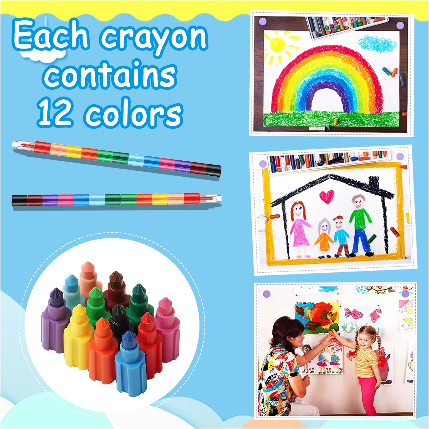 Vous pouvez modifier la longueur et l'ordre des couleurs des crayons de cire empilables selon vos envies. YeahBoom Kit Peinture, 12 Sacs à Colorier et 12 Crayons de Couleurs empilables, DIY Sac à Main à Colorier, Crayons de Cire pour Enfants Les crayons de couleur sont fiables et sans goût, faciles à utiliser, sans danger pour les enfants, les couleurs vives ne sont pas faciles à changer. Sac à Peindre En Solde Lot De 16 Sacs En Tissu Pour Enfants à Peindre, Sac A Colorier Enfant Sacs En Tissu à Peindre Enfants Chaque crayon de cire empilable est composé de 12 petits crayons arc-en-ciel courts individuels de différentes couleurs. Les craies de cire permettent également de réaliser différents modèles. Patère Murale de 3 Crochets rétractables, Porte Manteau Mural pour... Une large gamme de cadeaux d'anniversaire pour enfants, tombola et activités de mariage pour enfants. 12 crayons de cire empilables. Crayons] 9 crayons cire ergonomiques pour bébés Contenu du colis : 16 sacs en tissu non tissé pour graffiti. Spécifications: Matériau : tissu non tissé, cire, plastique Couleur : voir photo., Dimensions : voir photo. Contenu de la livraison : 16 sacs de dessin animé peints à la main, 12 crayons de couleur de 12 couleurs, sacs à peindre pour enfants, adaptés aux étudiants et aux adultes, aux étudiants Facile à colorer et adapté pour ranger les fournitures scolaires normales, un bon choix pour les trousses à crayons pour garçons et filles. Avec crayons de cire multicolores assortis : chaque sac de gym à peindre pour enfants est équipé de craie de cire, de sorte que chaque enfant peut profiter de sa fête de coloriage et créer son propre sac à dos unique.
