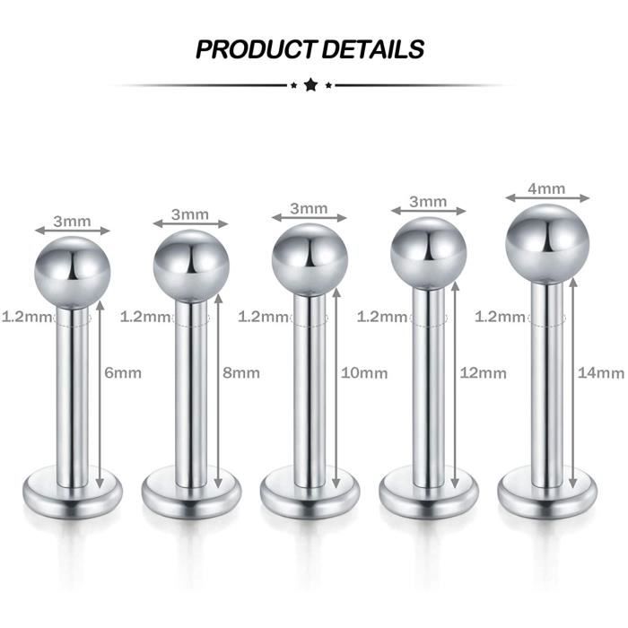 Kit Piercing Boule 1.2mm Piercing En Acier Chirurgical Punk Pour Femme Anneau De Nez En Or Percing Labret Centré Bijou Piercing Lèvre - Nez Anneau Segment Acier 316L Métallisé Piercing en acier chirurgical Punk pour femme anneau de nez en or... Hypoallergénique, sûr et confortable, parfait pour un port à long terme. Vivez le confort et le style avec notre ensemble de piercing à lèvres en acier chirurgical. Des surfaces lisses, des métaux hypoallergéniques et un savoir-faire impeccable garantissent un processus de guérison sans douleur. Lot de 10 Pièces Piercing Lèvre en Acier Chirurgical Boule,1., 2mm 316L en acier inoxydable Piercing lèvre anneau Fabriqué en acier inoxydable de haute qualité, il est sûr, confortable et adapté à différents piercings. Rehaussez votre jeu de piercing avec nos perforateurs à lèvres en acier chirurgical. Polyvalents et hypoallergéniques, ils sont idéaux pour une gamme de piercings, assurant confort et style à chaque fois. Cet accessoire s'adapte sur les bijoux de piercing pour l'arcade, le bridge, l'oeil de chat, le labret, la lèvre, l'oreille (lobe, cartilage, tragus), le téton, les parties intimes et autres modèles en 1,2 mm