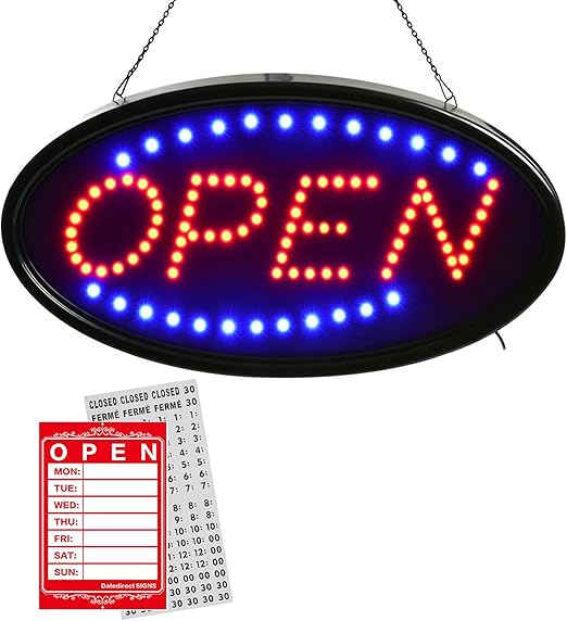 Enseigne Lumineuse ReyeeInc Panneau Ouvert Néon Lumineux Et à Intensité Variable Alimenté Par LED Et USB Pour Fenêtre D'entreprise, Magasin, Restaurant, Salon, Bar, Mur, Bureau, Spa (39,1 X 25,9 Cm Panneau Acrylique LED 12W Panneau lumineux LED néon ouvert. Parfait pour faire de la Panneau luineux à LED vertical – Éclairage de bienvenue à agasin... La ligne d'adaptateur mesure environ 150 cm de long, et les dimensions totales du produit sont de 240 x 480 x 25 mm. Contenu : 1 lampe LED, 1 adaptateur, 1 chaîne de suspension. Panneau LED accrocheur : ce panneau électrique vibrant dispose de lumières LED lumineuses qui sont très visibles et peuvent être facilement commutées entre différents modes. Construit avec un panneau acrylique durable et une coque arrière en ABS, il a une consommation d'énergie d'environ 12 W. Design convivial : le panneau ouvert est équipé d'une chaîne de suspension robuste en acier inoxydable pour une installation facile partout où vous le souhaitez. Il suffit de le brancher et de tourner l'interrupteur pour éclairer votre vitrine avec un nouveau panneau frappant. Durable et résistant aux intempéries : fabriqué à partir de vinyle de haute qualité, ce panneau LED est imperméable, résistant aux rayures et conçu pour résister aux éléments, ce qui le rend adapté pour les applications intérieures et extérieures, avec une durée de vie allant jusqu'à 5 ans en extérieur et même plus longue à l'intérieur. Panneau Fermé Ouvert mécanique