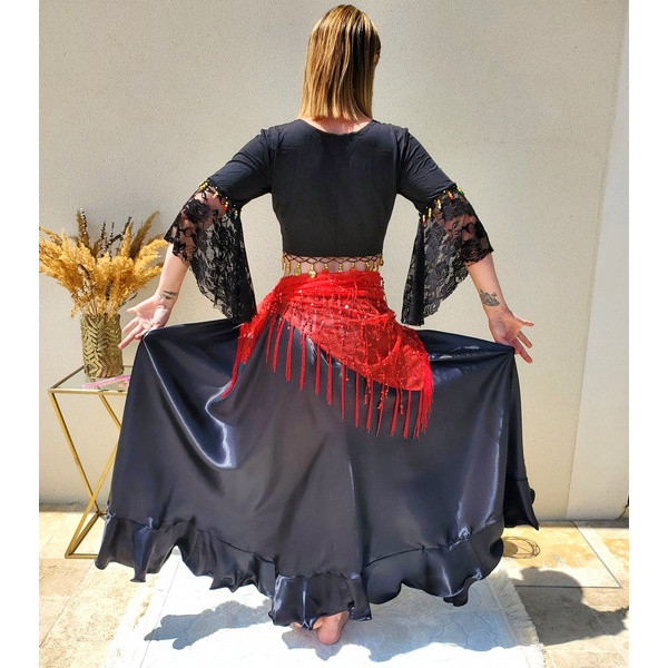 Costume de ballerine du ventre, jupe de danse du ventre, jupe de danse du ventre, jupe de flamenco, jupe de bal, jupes mexicaines pour femme. Idéale comme jupe flamenco femme pour des performances saisissantes., Utilisation polyvalente : Cette jupe flamenco est idéale pour la danse orientale, le flamenco, les séances de pratique, les déguisements d'Halloween, les fêtes et les danses latines., Il doit être repassé avant utilisation. Quoi de mieux qu'une jolie jupe en satin classique pour une danse Design: Cette jupe danse orientale, en satin avec des volants, offre une forme en cercle complet pour des tours aisés en danse orientale, flamenco ou danses folkloriques. Remarque : car la jupe de danse du ventre est en tissu satiné, elle se plie facilement. Avec ses 12 yards (environ 11 mètres) de tissu, elle a un volume incroyable. Parfaite pour la danse orientale (belly dance), le flamenco, le style tribal fusion... Elle devient cependant lisse et élégante après repassage. Léger et élastique pour un mouvement sans restriction. Volants: Les volants larges captent la lumière lors des tours, tandis que le satin doux de la robe danse orientale assure confort pendant les séances intensives., Jupe Longue Soirée Baisdan Jupe De Danse Orientale Pour Fille, Jupe Longue En Satin Brillant Pour Danse Du Ventre, Flamenco Et Spectacles Blanc 5-7 Ans Jupe Flamenco Femme Jupe satin rouge fente et volants de danse orientale - 26,90 Remarque : En raison du tissu de satin, cette jupe danse se froisse facilement.