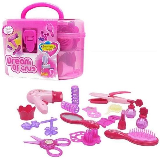 Avec le sèche-cheveux, les ciseaux, le peigne et bien plus encore, les enfants peuvent s’amuser à créer des coiffures imaginatives et partager des moments de joie. Set De Coiffure Enfant Gifts2U Jouets De Salon De Coiffure Pour Filles, Ensemble De Jeu De Salon De Beauté Pour Fille Maquillage Bois Enfant Kit Coiffure pour Enfants: Avec notre kit coiffure en bois rose délicat, chaque enfant peut se transformer en petit coiffeur ou coiffeuse ! Le cadeau parfait pour les jeux de rôle: Ce kit coiffure est le cadeau idéal pour les enfants de 3 à 8 ans. Parfait pour jouer avec des frères et sœurs, des amis ou même avec maman, tout en explorant le monde des accessoires de coiffure ! 💄DESIGN CONFORTABLE AUX VOYAGES Accessoires de coiffure en bois de haute qualité: Notre kit coiffure est fabriqué en bois robuste, lisse et recouvert d’une peinture non toxique, sûre pour les enfants. Ce kit d’accessoires de coiffure est durable, sans arêtes vives, et offre des heures de jeu sans fin. Il comprend un sèche-cheveux, fer à lisser, peigne, miroir, etc., pour que les enfants imitent le coiffeur. En bois de qualité avec peintures non toxiques, il... Ajoutez le tablier de coiffeur et plongez dans une expérience de coiffure encore plus réaliste et amusante. Parfait pour des heures de jeu créatif et amusant ! Le cadeau parfait pour les jeux de rôle: Ce kit coiffure est le cadeau idéal pour les enfants de 3 à 8 ans. Jouet Coiffeur Enfant Atoylink Set Coiffeur Enfant En Bois - Sèche Ce kit coiffure est idéal pour les jeux de rôle créatifs, sans bruit ni électricité, mais avec beaucoup d’imagination ! Parfait pour jouer avec des frères et sœurs, des amis ou même avec maman, tout en explorant le monde des accessoires de coiffure !
