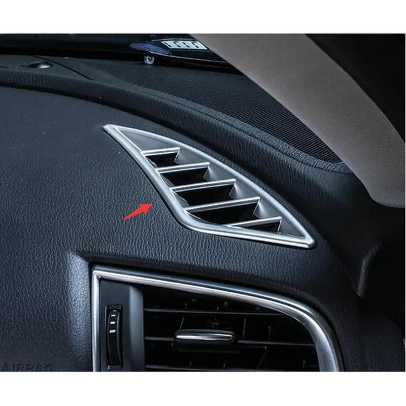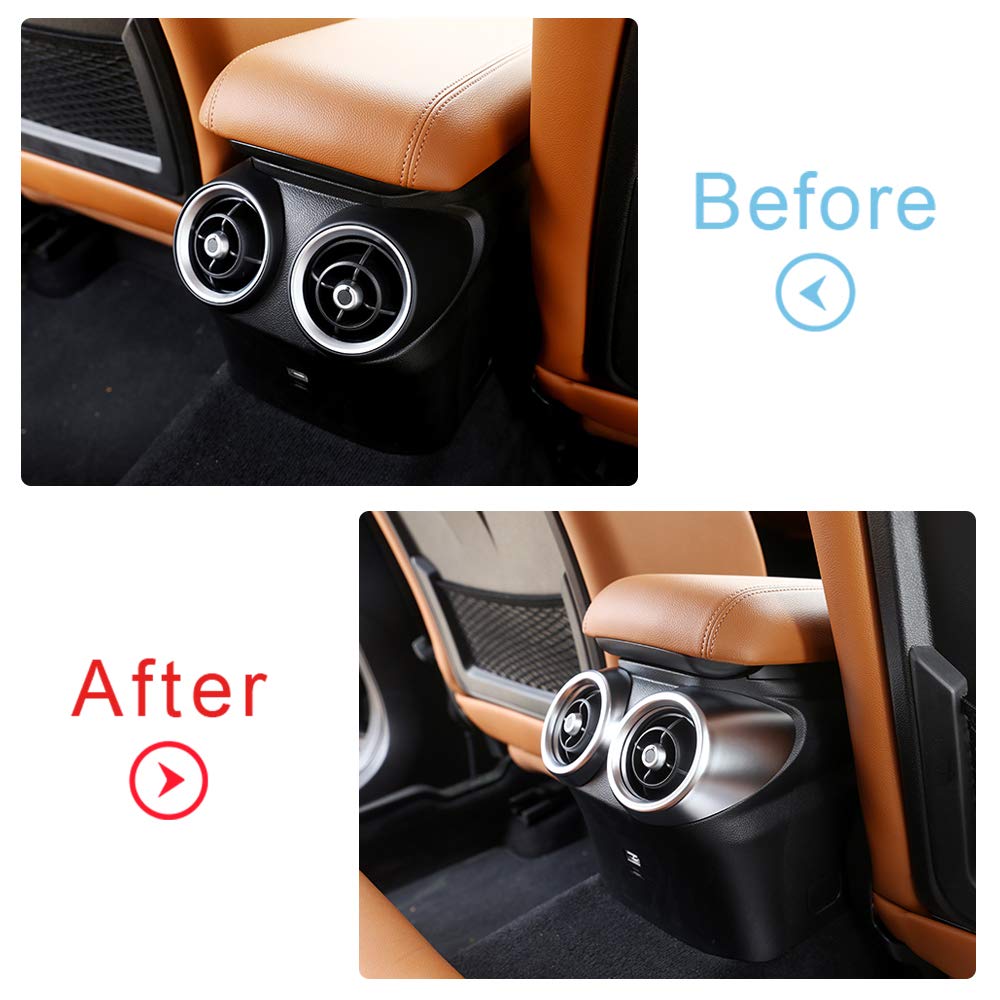 LLKUANG Pour Alfa Romeo Giulia 2017 2018 ABS chromé Décoration Aération Avant Arrière Autocollant Argenté Pour Grille D'aération De Climatiseur De Voiture Autocollant Alfa Romeo Giulia Dimensions Alfa Romeo Giulia SWB Zagato 2025 et avant Quantité : 2 pièces/ensemble Autocollant de grille d'aération de pilier A de voiture Accessoires de décoration de ventilation de climatisation pour Great Wall... Fonctionnalité : modification de voiture, décoration Méthode d'installation : Ruban adhésif, facile à installer
