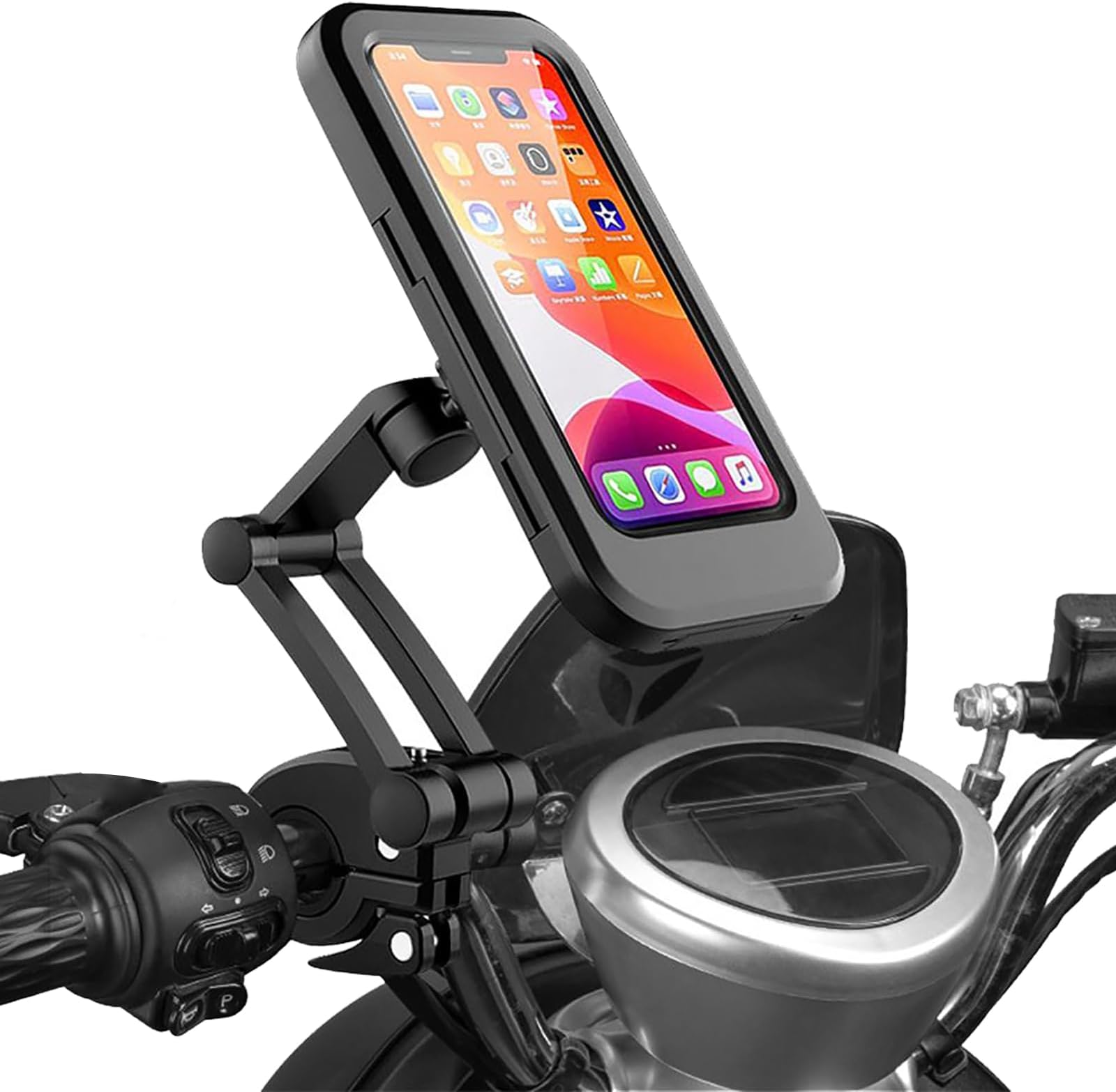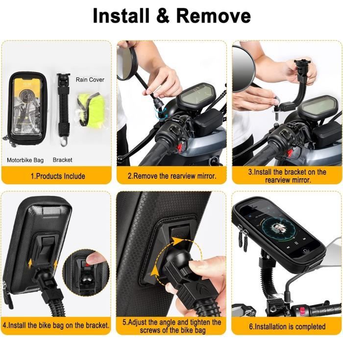 1 support de serrage pour tuyau., Remarques : 1., La couleur de l'article peut varier de celle de la photo, en fonction des paramètres d'affichage et de luminosité de votre ordinateur., 2., Les mesures étant prises à la main, les tailles indiquées peuvent varier légèrement. Support Guidon Universel Support Téléphone Moto/Vélo Rolgno Facilement réglable : profitez d'une navigation facile et d'un divertissement pendant que votre moto est équipée de notre support de téléphone. Support Rotatif 360° Moto Support De Téléphone Universel Rotatif à 360° Pour Guidon De Velo Moto Compatible Avec Divers Smartphones Noir 97414983 Support Téléphone Moto Guidon Caractéristiques : Matériau du produit : ABS + silicone. Accessible sans effort : gardez votre téléphone à portée de main et restez connecté sur la route grâce à notre support de téléphone pour moto. Universel pour tout guidon de téléphone : le support de téléphone de vélo est compatible avec les guidons de 1,5 à 4 cm, vous pouvez l'utiliser sur un vélo... Large compatibilité : s'adapte à la plupart des appareils du marché, convient à tous les smartphones de 4,7 à 6,8 pouces, n'affecte pas la fonctionnalité ou le style. Protection robuste : le support de téléphone pour moto se fixe uniformément aux quatre coins, équipé d'un verrou de sécurité unique, assurant que votre téléphone reste bien en place pendant la conduite ; coussinets en silicone antidérapants pour éviter les rayures et les vibrations Robuste et sécurisée : La pince est équipée de 4 vis de fixation pour garantir que votre téléphone reste bien en place sur votre vélo.Sécurité renforcée : Le verrouillage automatique, associé à un système anti-retournement, évite tout encombrement pendant vos sorties à vélo.Installation facile : L'installation sans outil est simple et rapide sur n'importe quel guidon de vélo... Il suffit de pousser le bras supérieur contre le haut du téléphone et de le déverrouiller facilement Son verrouillage automatique assure un accès rapide et facile au téléphone mobile, sans interrompre votre voyage. Design convivial : notre support de téléphone pour moto dispose d'une interface conviviale soigneusement conçue, assurant votre sécurité à tout moment. Ne cherchez pas plus loin que notre support de téléphone pour moto. Vous pouvez facilement l'ajuster à l'angle de vue souhaité avec une main, ce qui le rend parfait pour naviguer dans les parcs d'attractions ou les rues de la ville