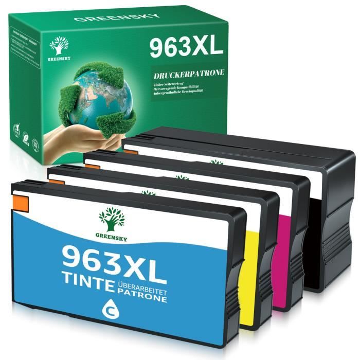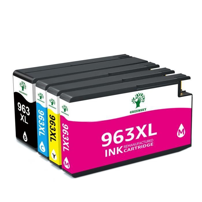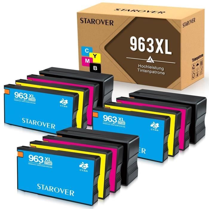 963XL - 4 Cartouches d'encre compatibles HP 963XL 963 XL pour... ✅【Encre de haute qualité】L'encre LCL 963XL est une encre de haute qualité qui a une concentration et un contraste élevés, et est une encre qui peut dessiner clairement des caractères fins sans infiltration de couleur. Les encres de haute qualités sont imperméables et résistantes à la lumière et ne se décolorent pas même à l'extérieur, permettant ainsi aux impressions de durer assez longtemps., ) Cartouches Compatibles Hp Officejet Pro 9010 963xl 4 Pack FINEST-4U 963 XL 8 Cartouche Pour HP 963 XL Compatibles Avec HP Officejet Pro 9010 9014 Hp 963xl Veuillez confirmer les imprimantes compatibles avant de commander. Nom de modèle. 963XL/KCMY · Marque. LCL · Couleur d'encre. Cyan, magenta, jaune · Rendement de la page. 2000 · Appareils compatibles. HP OfficeJet Pro 9010 📣⚠️【Attention】NON compatible avec HP OfficeJet Pro 9010e, 9012e, 9013e,9014e, 9015e, 9016e, 9018e,9019e,9020e,9022e,9023e,9025e et HP+ service. Cartouche d'encre Original HP 963XL / Cyan