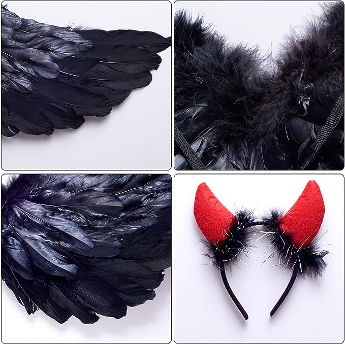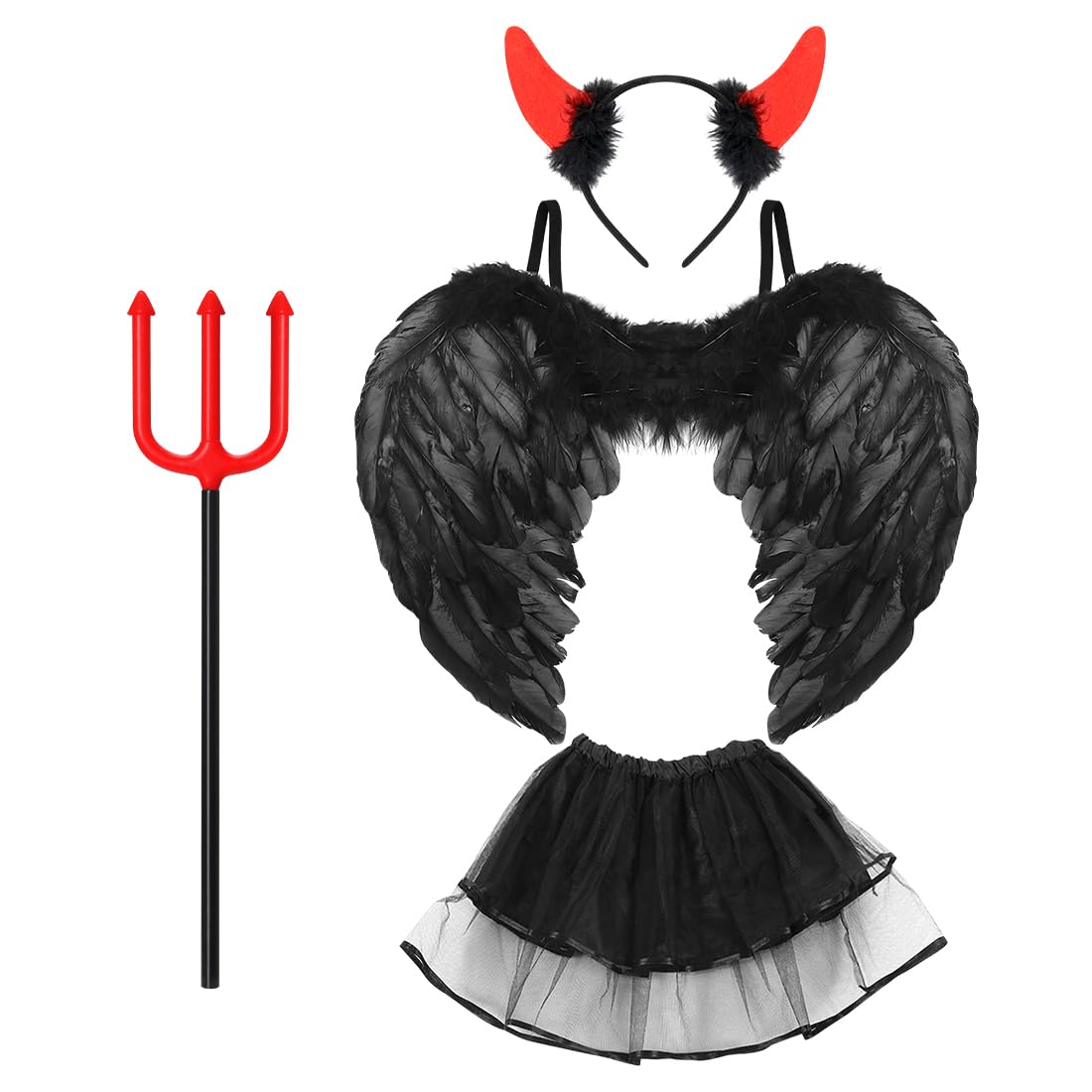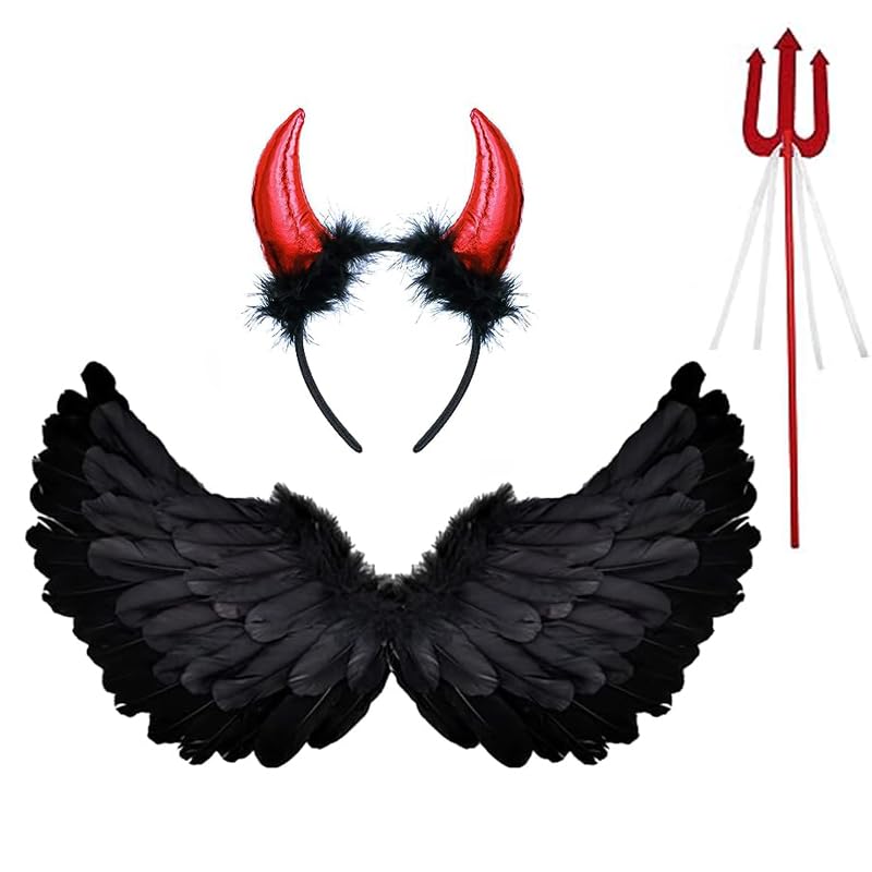 Disfraz de Diablesa oscura con alas y diadema para niña Sticker Debout diable avec fourche Ailes Diable Rouge KESYOO Kit De Costume D'ange Diable 3 Pièces Pour Halloween, Serre-tête, Fourche, Fête, Cosplay, Accessoires De Déguisement, Noir, Noir Ailes D'ange Noires Le bandeau du diable est en polyester, durable et confortable. Elles sont fabriquées à la main avec des plumes noires originales, qui sont légères et douces, et n'ont pas d'odeur désagréable. Ensemble costume complet. Cet ensemble de trois pièces comprend des ailes d'ange, un bandeau en corne de diable et une fourche, offrant tout le nécessaire pour... La fourche du diable est en plastique, légère et amovible. Matériaux de Première Qualité - Le bandeau du diable est en polyester, durable et confortable. Facile à Transporter - Notre fourche de diable rouge mesure environ 15,75 pouces, elle est facile à transporter et constitue un excellent complément aux costumes de diable. Applications Diverses - Le kit d'accessoires de costume de diable peut être utilisé à diverses occasions, telles que les fêtes d'Halloween, les fêtes sur le thème du diable, les fêtes de minuit, les spectacles de cosplay, les jeux de rôle, les fêtes de carnaval, les performances sur scène, etc.