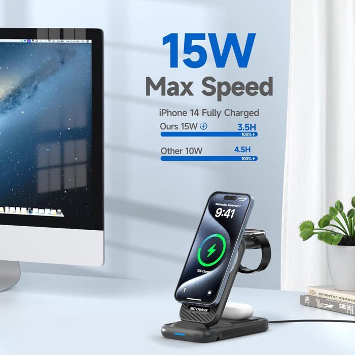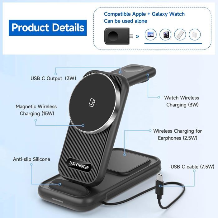 INIU Chargeur Induction, 15W Certifié Qi Charge Rapide à Double Bobine, Lumière Adaptative Support de charge sans fil 15W : Ce chargeur sans fil Samsung ajuste automatiquement la puissance de charge entre 5W, 7., 5W, 10W et 15W selon les besoins de votre appareil, offrant ainsi une expérience de charge optimale pour une gamme d'appareils plus large que jamais. Chargeur Induction Chargeur Sans Fil Rapide, 15W Charging Pad Pour IPhone 14 Pro Max/13/12/11/XS Max/XR/XS/X/8,Samsung Galaxy S22 - Téléphonie Chargeur Compatible Iphone Samsung Charge verticale ou horizontale : Le support sans fil à double bobine permet de charger votre téléphone verticalement ou horizontalement, offrant ainsi un angle de vision optimal pour regarder des vidéos, écouter de la musique, jouer à des jeux, etc. Hoidokly Chargeur Induction 10W Chargeur sans Fil à Induction Rapide... Gradetek Chargeur Induction Rapide 4 en 1 Chargeur sans Fil pour iPhone... C'est également un excellent présent pour les amis, collègues, parents et membres de la famille. La base antidérapante en silicone et le support surélevé assurent une stabilité supplémentaire sur tous les bureaux. Un beau cadeau pour hommes et femmes, adapté aussi bien sur un bureau qu'une table de chevet. Idéal pour les coques de protection. Cadeau idéal pour vos proches : Un cadeau parfait pour Noël, Thanksgiving, le Nouvel An, la Fête des Mères, la Fête des Pères, ainsi que pour les anniversaires, mariages, anniversaires de mariage et housewarmings. ) Protocoles de charge : QC3., 0, PD Matériau : ABS Fréquence de fonctionnement : 100-250 kHz Dimensions : Déplié : 95 x 75 x 125 mm, Plié : 75 x 20 x 140 mm Ce support de charge sans fil de 15 W est compatible avec les appareils compatibles Qi., 1., Compatible avec iPhone 8 / 8 Plus, X / XS / XS Max / XR, 11 / 11 Pro / 11 Pro Max, 12 / 12 mini / 12 Pro / 12 Pro Max, 13 / 13 mini / 13 Pro / 13 Pro Max, 14 / 14 Plus / 14 Pro / 14 Pro Max, 15 / 15 Plus / 15 Pro / 15 Pro Max 2., Compatible avec Galaxy S6 / S7 / S8 / S9 / S10 / S20 / S21 / S22 / S23 / S24, Note 5 / 8 / 9 / 10 / 20, séries Z Flip / Z Fold (certains modèles) 3., Compatible avec Google Pixel 3 / 3 XL, 4 / 4 XL, 5 / 5a, 6 / 6 Pro (certains modèles), 7 / 7 Pro, 8 / 8 Pro 4., Compatible avec Xiaomi Séries 9 / 10 / 11 / 12 / 13 / 14, Mi MIX 2S / 3 / 4 5., Compatible avec Huawei Mate 20 Pro / 30 Pro / 40 Pro / 50 Pro, P30 Pro / P40 Pro / P50 Pro Autres marques Compatible avec OPPO : Find X2 Pro / X3 Pro / X5 Pro Compatible avec OnePlus : Séries 8 / 9 / 10 / 11 (certains modèles) Compatible avec Sony : Xperia 1 III / 5 III / 1 IV / 5 IV Compatible avec Nokia : Série Lumia (certains anciens modèles), 8 Sirocco