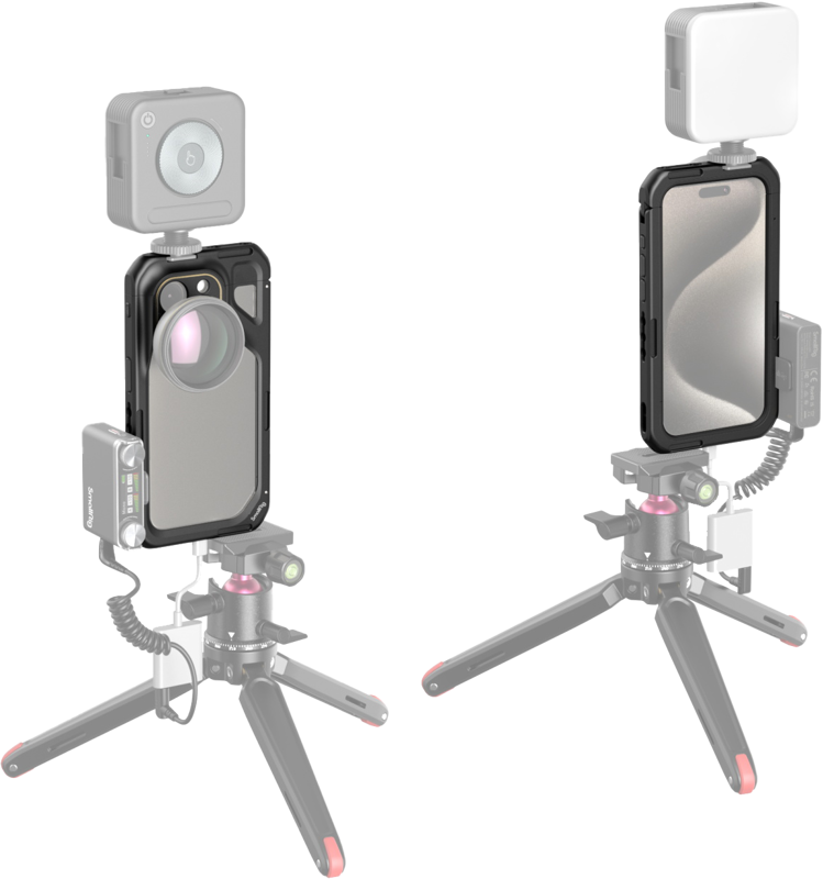 Smallrig Kit vidéo mobile (Double poignée) pour iPhone 15 Pro Max 4392 Principaux points forts · Couleur. argenté · Marque. SMALLRIG · Appareils compatibles. iPhone 15 Pro Max · Dimensions du produit. 1,7P x 9,6l x 1,7H centimètres Phone Bracket SmallRig-Jos Vidéo Mobiles Pour IPhone 15 Pro, IPhone 15 Pro Max, Vidéo Statique, Prometteur, Diffusion En Direct, Vlog, Vidéo Cage Vidéo IPhone 15 Pro Max SMALLRIG cage de téléphone comprend plusieurs trous filetés 1/4-20 et deux cold shoes pour fixer la poignée, un Trépied BUT2664, un Microphone 3468, une Lampe Vidéo LED 3286, etc. Aucun Impact sur l'Utilisation du Téléphone Portable : Le kit de cage de téléphone présente une conception creuse pour maintenir l'accès à tous les boutons, ports, radar et objectif ultra grand angle, et est entièrement compatible avec les chargeurs sans fil pour MagSafe. Smallrig Kit vidéo mobile (Double poignée) pour iPhone 15 Pro Max 4392... (Remarque : La Monture d'Objectif Filetée 17 mm/37 mm 4394/4395 et la Monture d'Objectif Série T 4399 ne sont pas incluses et doivent être achetées séparément) Protection Complète : Le design du corps tout compris en alliage d'aluminium est parfaitement compatible pour iPhone 15 Pro Max. En même temps, dans la protection du téléphone mobile, il dispose d'un joint intégré, résistant aux chocs et aux rayures. La conception de verrouillage et de libération rapide facile à utiliser est plus sûre, pratique et plus stable.