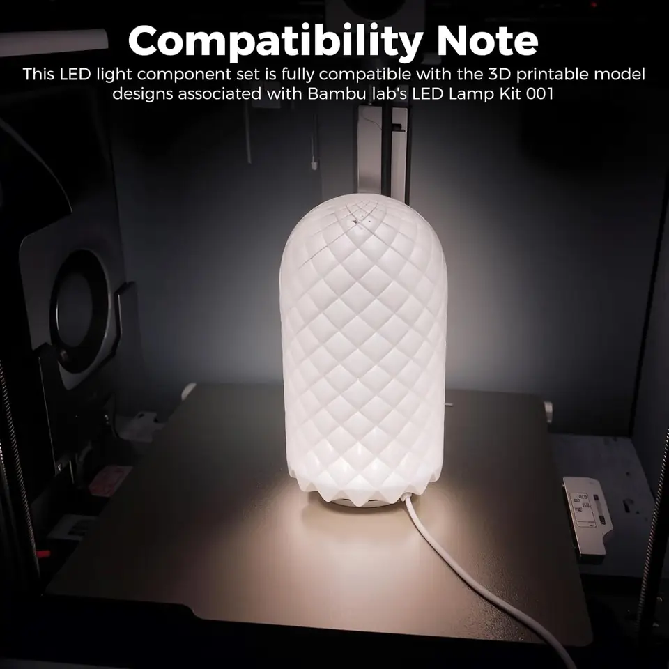 Spécifications: Matériel: alliage d'aluminium Couleur : blanc. Contenu de l'emballage : 4 kits de lampes LED pour imprimante 3D., 4 adaptateurs USB. Matériaux de haute qualité : le boîtier est fabriqué en alliage d'aluminium, le kit de lampes LED pour imprimante 3D est robuste et durable, assure une lumière claire et une bonne dissipation de la chaleur, et convient à l'utilisation de matériaux d'impression 3D courants tels que le PLA et le PETG Le kit de lampes LED pour imprimante 3D est naturel et doux et ne nuit pas à vos yeux. Kit de bande lumineuse LED pour imprimante 3D Bambu Lab P1P/P1S, avec 1,5 m de long, 7 mm de large et 75 perles LED, facile à installer, lampe 5 V, bande flexible Dimensions : 60 x 8 mm Tension : CC 5 V., Puissance : 2 W. Vous pouvez facilement surveiller la progression de votre processus d'impression sans interruption. Bambu Lab lance l'imprimante 3D multicolore A1 mini, incroyablement riche en fonctionnalités, à... Améliorez vos projets d'impression 3D avec le kit d'éclairage LED La lumière LED est parfaite pour vos imprimantes telles que A1, A1mini, P1S, P1P et X1C. Modèles d'impression 3D compatibles : ce kit de lampes est compatible avec les modèles imprimables 3D de Bambulab qui peuvent être téléchargés à partir du site Web MakerWorld. Kit éclairage A1 P1P X1C Kit De Lampes LED Pour Imprimante 3D Bambu Lab A1/A1mini/P1S/P1P Lampes LED Pour A1 P1S X1C Bambu Lab A1 | Imprimante Ultra Créative Largement utilisé : le kit de lampes LED pour imprimante 3D peut non seulement être utilisé dans divers projets d'impression 3D, mais peut également être utilisé comme lampe de chevet ou décoration de pièce, ainsi que comme veilleuse à l'extérieur et à l'intérieur