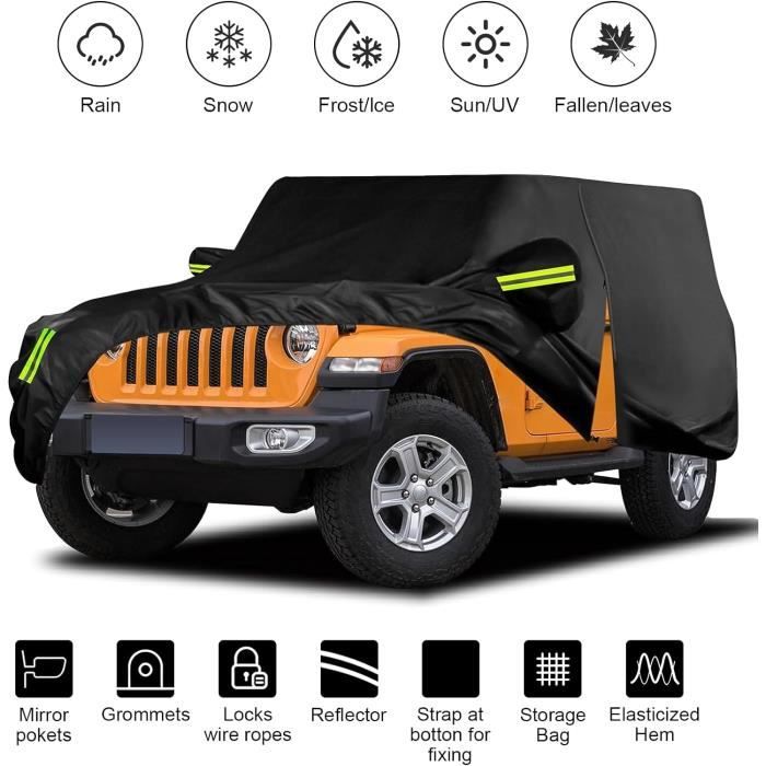 Protection Complète Extérieur Anti UV Housse De Protection Pour Jeep Wrangler JK 4 Portes, Imperméable Housse Avec Fermeture éclair Accès Portes Housse de protection Anti-UV - Overland Accessoires BACHE VEHICULE,--Pare soleil de voiture pour Daewoo adventa, housse de protection complète, Anti... Nous avons placé une corde élastique le long du bord du capot ; la bonne quantité d'élasticité peut faciliter l'installation. Contenu :1 housse de voitureConseil :Veuillez confirmer le modèle, la cylindrée et l'année de votre voiture avant l'achat. Points forts du produit : La housse de voiture a été soigneusement conçue en tenant compte du contour général du véhicule, des rétroviseurs et de la position de la fermeture éclair de la porte de la cabine du conducteur. Ajustement spécifique au véhicule :pour Jeep Wrangler 2 portesInformations sur le produit :Couleur : NoirMatériau : 190T-PUDimensions : 440x190x150cm / 173,23x74,8x59,06 (L*l*H)Points forts du produit :Nous avons des fermetures éclair dans la cabine qui permettent aux passagers d'entrer et de sortir sans soulever la housse de voiture. Numéro OE : DoesNotApply. Ajustement spécifique au véhicule : Convient pour Jeep Wrangler 2 portes. Comment utiliser : Les couvertures de voiture complètes sont équipées de cordons élastiques et de boucles coupe-vent, permettant même aux utilisateurs novices de les installer en moins d'une minute. Ajustement spécifique au véhicule : Convient pour Jeep Wrangler 2 portes. Comment utiliser : Les couvertures de voiture complètes sont équipées de cordons élastiques et de boucles coupe-vent, permettant même aux utilisateurs novices de les installer en moins d'une minute