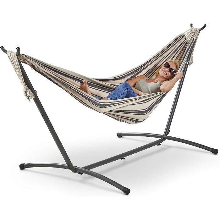 Prêt à l'emploi en quelques minutes grâce à un montage facile ; design stable, sûr et fiable avec une capacité de charge maximale de 175 kg pour deux adultes. Hamac Coton Confortable 175 Kg AVOID® Hamac 2 Personnes – Confortable Pour L'extérieur Et Le Hamac Coton Confortable Porte-gobelet Créez votre propre espace de détente avec le hamac AVOID 2 places avec porte-gobelet. Hamac 2 Personnes Randonnee - MARQUE - Chaise Hamac Coloré Exterieur... Le tissu est fabriqué en coton de haute qualité, doux au toucher et respirant, ce qui le rend confortable même pendant les chaudes journées d'été. Que vous souhaitiez vous détendre en plein air ou créer un coin salon à l'intérieur, le hamac AVOID avec porte-gobelet offre la solution parfaite. Hamac Avec Support - Avoid - Résistant Aux Intempéries - 292 Cm X 109 Cm - 2 Personnes · Comprend une base robuste et facile à assembler · Tissu respirant de... La surface de couchage spacieuse de 263 cm x 130 cm x 100 cm offre suffisamment d'espace pour deux personnes pour se détendre ensemble. Cet ensemble complet combine commodité, confort et fonctionnalité tout en un. La surface de couchage spacieuse de 263 cm x 130 cm x 100 cm offre un confort ultime pour deux personnes ; idéal pour se détendre ensemble ou seul dans le jardin, sur le balcon ou à l'intérieur. Chaise Longue Avec Appui-Tête Et Porte-Gobelet, Pliable, Gris, En Acier Tissu Polyester Oxford Bain De Soleil De Champing 668d37f0af0eada9b217185b Grâce à la base en acier robuste, les arbres ou les poteaux sont superflus et le hamac est stable sur n'importe quelle surface plane. Le tissu en coton de qualité supérieure dans une couleur grise élégante est doux, respirant et durable ; reste confortable en cas d'utilisation prolongée, même pendant les chaudes journées d'été.