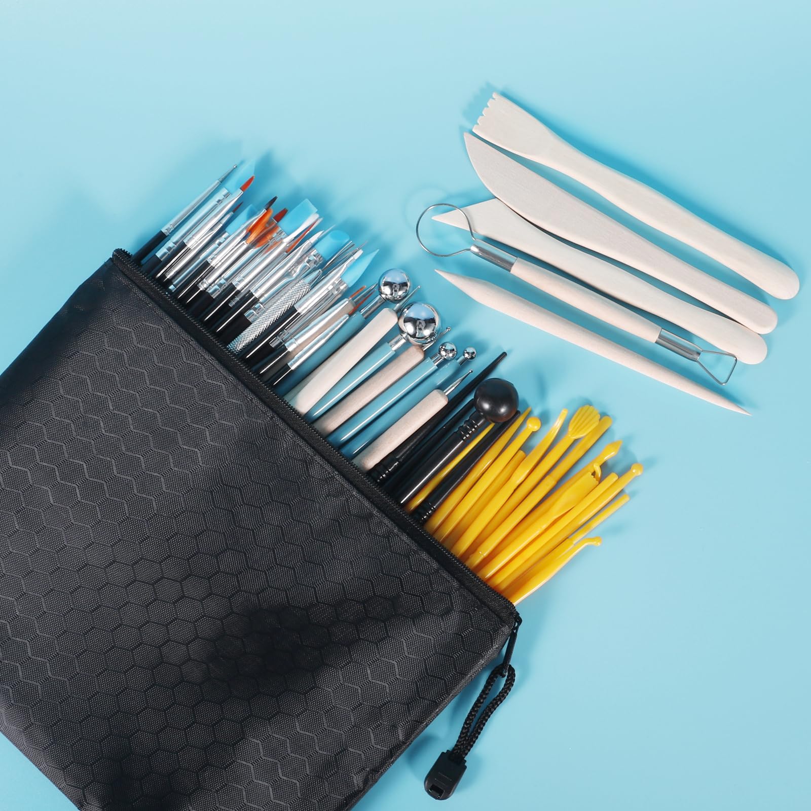 Trousse Rangement Outils Modelage SVIPDDD Outils Sculpture Argile De 55 Pièces Pour La Maison, Outils En Argile Et Accessoires Pour L'artisanat, La Peinture Et L'artisanat Pour Les Artistes Et Les Amateurs De Poterie Créative Kit Outils Modelage 55 Pièces Poterie Outils de modélisation d'argile 14 pièces, argile séchée à l'air Il inclut tout le nécessaire pour modeler, texturer et créer des pièces uniques en poterie ou en artisanat. Idéal pour les cours d'art, les projets DIY ou juste... Kit d'outils de modélisation polyvalent de 55 pièces: le kit de poterie offre tout ce dont les céramistes débutants et avancés ont besoin. L'outil de poterie avec divers outils, y compris des outils en boucle, des aiguilles et autres, est idéal pour une large gamme de travaux de céramique et de modélisation. Les pointes finement polies et lisses sont robustes et permettent un travail précis, tandis que les poignées confortables assurent un travail sans fatigue. Outils pour poterie et céramique Il existe des outils en céramique et des outils de sculpture en argile disponibles dans une variété de styles et de tailles pour la sculpture, le moulage, la modélisation et bien plus encore, cela ouvre des possibilités infinies dans le monde de la créativité. Tous les outils et accessoires peuvent être rangés en toute sécurité et toujours à portée de main, ce qui en fait le compagnon idéal pour les artistes qui ne veulent pas manquer leur créativité en déplacement. Outil dargile Cest un cadeau parfait pour tous ceux qui souhaitent développer leurs compétences en poterie et en conception de poterie, et offre une excellente occasion de promouvoir la créativité et lartisanat. 55 outils essentiels pour le modélisme, les réparations et les projets créatifs. · Fabriqué à partir de matériaux durables, notamment de l'acier inoxydable et du...