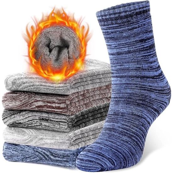 Lot 3 Paires Chaussettes Chaudes Chaussettes Thermiques Super épaisses, En Laine Mérinos Pour La Randonnée, L'hiver, Les Bottes De Travail Lourdes, Douces Et Confortables, Pour Homme Chaussettes Thermiques Homme Welwoos Lot de 3 paires de chaussettes thermiques chauffantes pour homme et femme - Chaudes pour l'hiver - Pour bottes de ski - Cadeau - Chaussettes (rayures bleues, taille M), Rayures B Chaussette de ski,chaussettes en laine mérinos pour adultes, absorbe... Parfait pour les froides journées d'hiver Ajustement confortable : nos chaussettes thermiques pour hommes sont conçues pour s'adapter parfaitement et offrir un confort durable. UTILISATION HIVERNALE : Ces chaussettes d'hiver pour hommes présentent une forme classique pour garder vos pieds au chaud et confortables. Nos chaussettes épaisses pour hommes garantissent que vos pieds sont confortables et confortables. Ils conviennent aussi bien à un usage quotidien qu'aux activités de plein air telles que le travail intérieur ou extérieur, la randonnée, la marche, les voyages, le ski et un usage quotidien. Option HIVER : Offrez à votre père, mari ou petit ami un ensemble de chaussettes d'hiver chaudes ! Ces chaussettes d'hiver pour hommes sont parfaites comme surprise pour Noël, les anniversaires, Halloween ou toute autre fête. Ces chaussettes thermiques pour femmes sont un mélange parfait de chaleur et de style. Elles sont super extensibles et confortables, et ont une doublure chaude et moelleuse! Idéales pour être portées à l'intérieur ou à l'extérieur avec n'importe quelle chaussure. Vous recevrez 3 paires de la couleur de votre choix