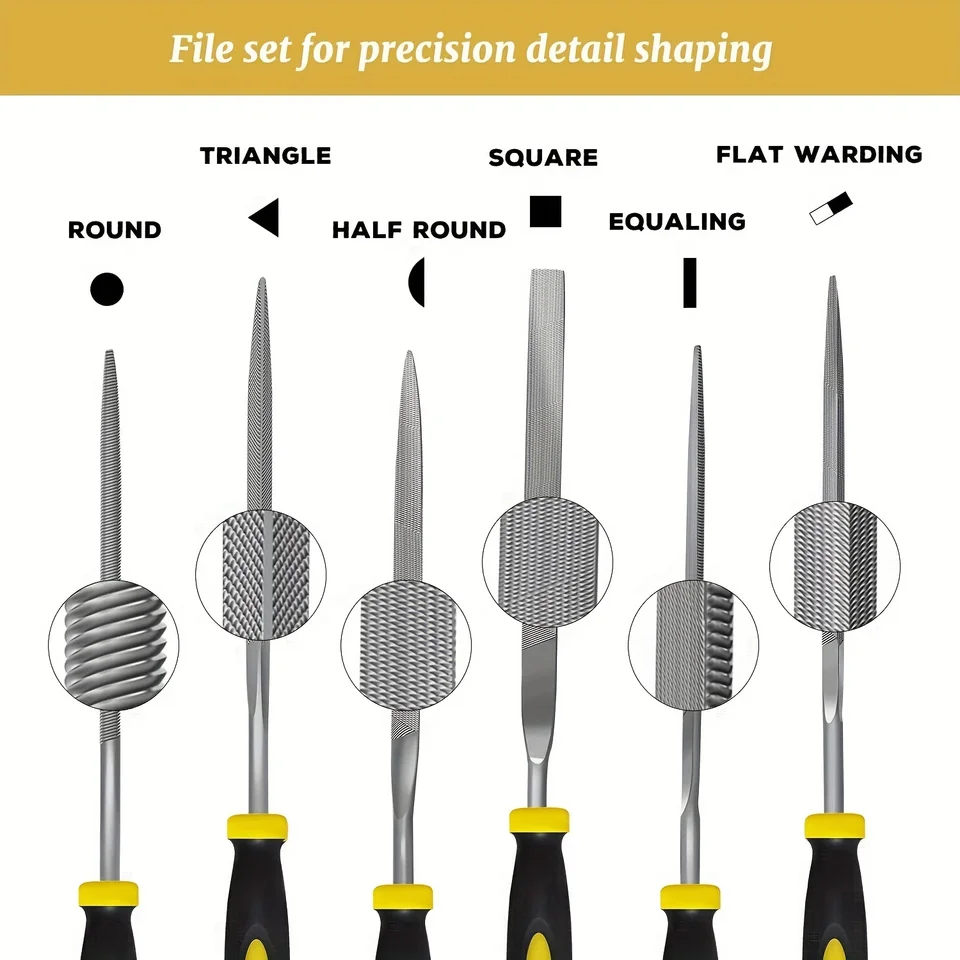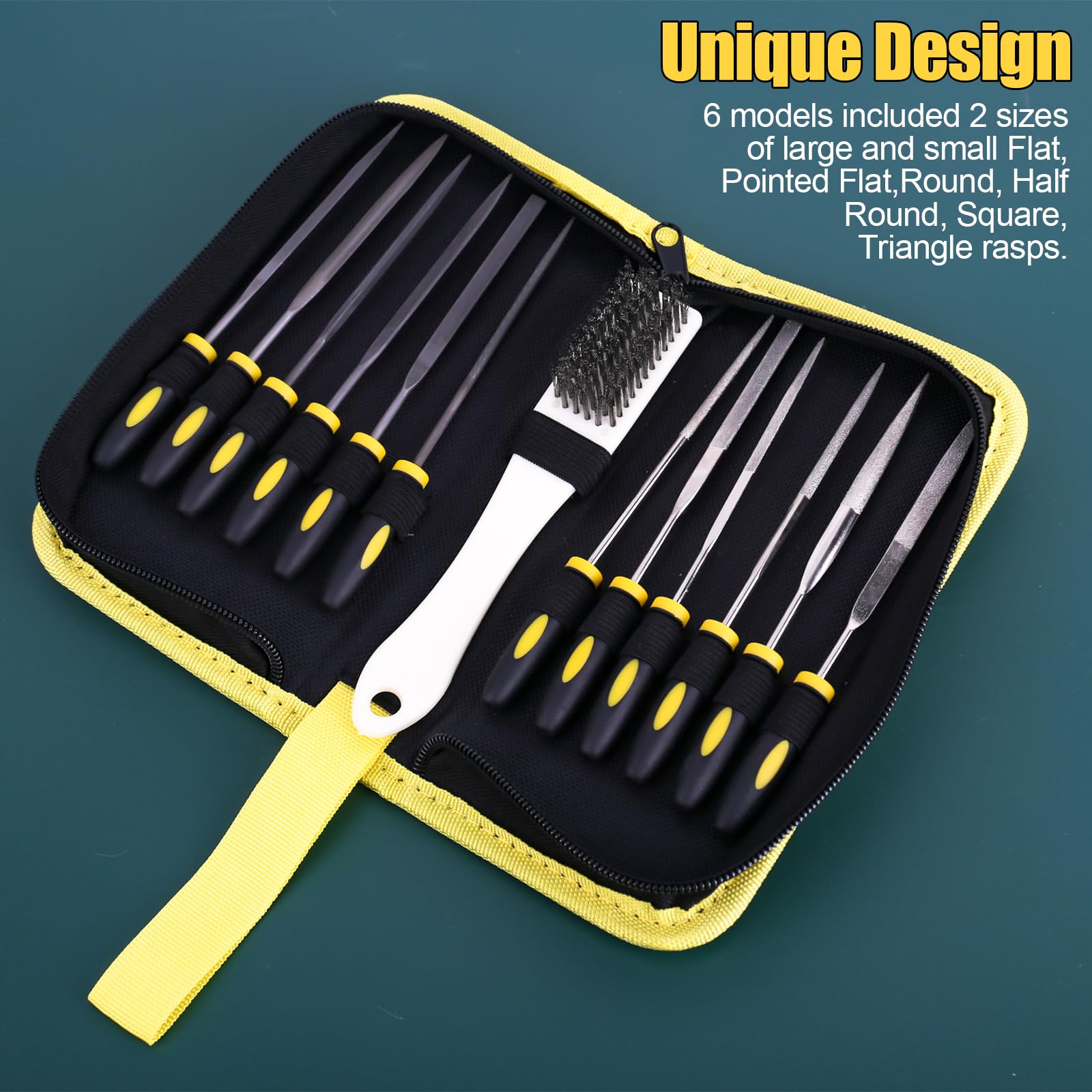 LOISIRS SCIENCES CREATIVITE | Limes à métaux Adler®, Limes à PERMA GRIT Lot de 5 limes aiguille longues fines Mini Limes Atelier Lime Diamant, Limes Pour Métal, Jeu De Limes Aiguille, Limes Outils De Ponçage Nom du produit : ensemble de 13 limes Dimensions : 22 × 11,5 × 4,5 cm Matériau : alliage + plastique Couleur : bleu Application : outils pour lisser les surfaces des matériaux dans les ateliers ou pour le bricolage Matériaux adaptés : bois, métal, céramique, verre, pierre, cuir, plastique, etc. Matériaux de haute qualité : ce jeu de limes fabriqué à partir d'un alliage de haute qualité offre une durabilité et une dureté exceptionnelles. Le forfait comprend]12 * limes diamantées, 1 * brosse, idéales pour le traitement du plastique, du bois et du métal. [Fabriqué en acier allié]Haute qualité... ——Améliorez votre atelier ou votre expérience de bricolage avec notre jeu de limes pour plus d'efficacité et de confort., Scénarios Applicables: Affûtage de précision : ce jeu de 13 limes garantit une finition impeccable sur différentes surfaces telles que le bois, le métal, le verre, le plastique, la céramique et le cuir. Rangement pratique : le set de limes métalliques et diamantées est livré avec une pochette de rangement spéciale en tissu Oxford, dans laquelle tous les composants peuvent être rangés en toute sécurité et qui garantit un transport sûr. Selon le domaine d'application, vous pouvez choisir parmi six formes différentes : ronde, demi-ronde, carrée, rectangulaire et triangulaire, ce qui permet une utilisation polyvalente.