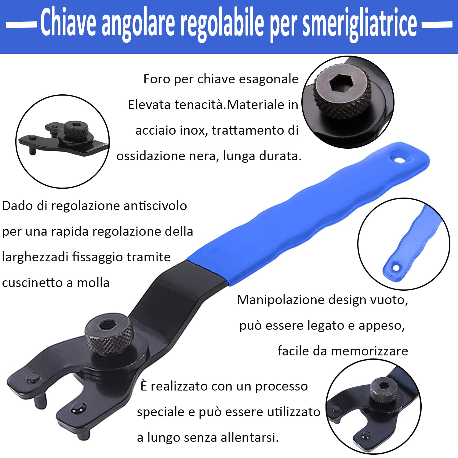 Étape 3 : Retirez la plaque de serrage pour remplacer la lame usée ou ancienne. Une Clé Universelle Pour Meuleuse D'angle *, Clé à Goupille Réglable En Acier Au *, Outil De Remplacement étanche Pour Outils électriques... Haute dureté et résistance à l'usure. Maniement simple et facile La clé pour meuleuse permet le montage et le démontage de la meuleuse de manière pratique, rapide et flexible. Clé écrou Serrage Meuleuse Poignée Antidérapante Yuentoen Clé Pour Meuleuse D'angle Réglable, À Manche Clé Réglable Disque Meuleuse Matériaux de haute qualité : La clé pour meuleuse d'angle est fabriquée en acier au carbone durable et traitée avec un revêtement noir. La clé à écrou de serrage réglable convient à tous les modèles de meuleuses d'angle. Étape 4 : Appuyez sur le bouton à l'arrière de la meuleuse et tournez la clé dans le sens des aiguilles d'une montre pour installer la nouvelle meule/lame. Conception légère : Le bouton rotatif permet d'ajuster facilement la clé à tige, avec les dimensions suivantes : 195 mm x 31 mm x 1,22 pouce ; plage d'ajustement : 10 mm à 40 mm (0,39 à 1,57 pouce), hauteur de la tige : 7 mm. Facilité d'utilisation : Ajustez d'abord la largeur de la clé en fonction du trou de la plaque de pression, puis appuyez sur le bouton arrière de la meuleuse d'angle et tournez la clé dans le sens inverse des aiguilles d'une montre pour retirer et remplacer les pièces ou lames usées. Angle de réglage : 0°-90°, Plage d'application : 10-40 mm. Étape 2 : Appuyez sur le bouton à l'arrière de la meuleuse tout en tournant la clé dans le sens inverse des aiguilles d'une montre. Réglable de 10 à 46 mm pour remplacer les broches dans les meuleuses d'angle et d'établi, les scies à onglet et circulaires. Poignée ergonomique revêtue de plastique, antidérapante et confortable, rend votre travail plus pratique C'est un outil portable et polyvalent, indispensable à la maison, utilisé avec l'écrou de serrage pour monter ou démonter les meules. Large compatibilité : La clé à écrou de verrouillage réglable est compatible avec la plupart des meuleuses d'angle et des écrous de verrouillage ; c'est également une clé de secours idéale pour les meuleuses d'angle, les meuleuses de banc, les scies circulaires et les coupe-bordures. Meuleuse d'angle - VBESTLIFE - 18V - Sans fil - Moteur sans balais