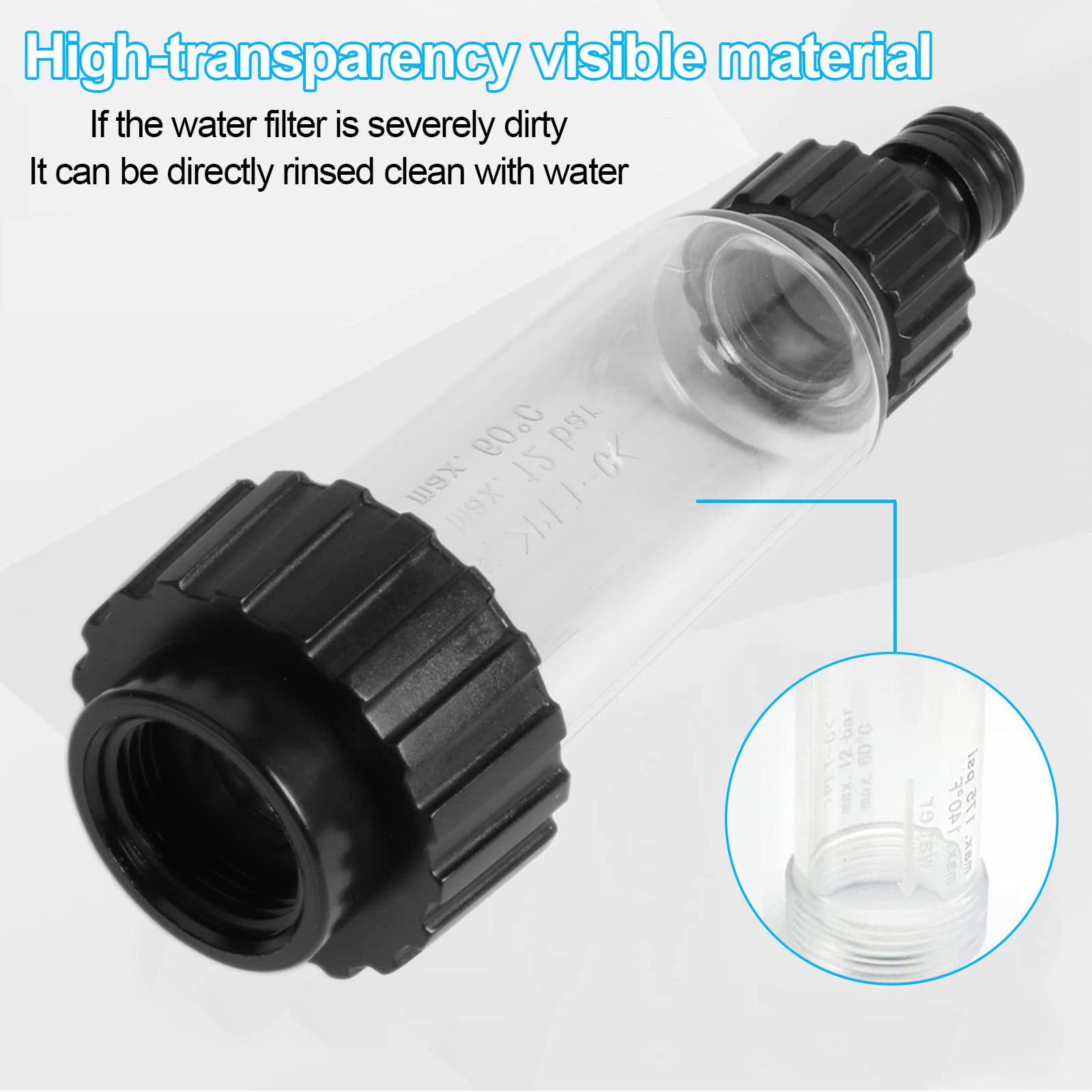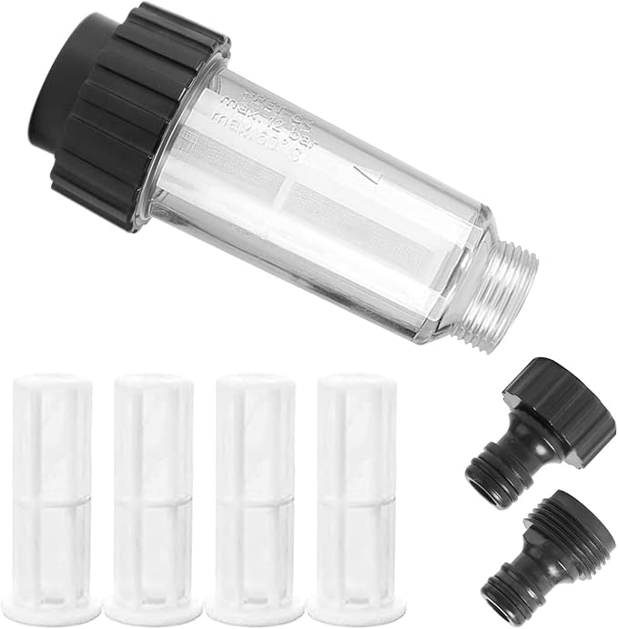 Tuyau d'arrosage,Filtres de connexion d'eau pour nettoyeur haute pression, 2 pièces + 4 filets Sur , vous trouverez une sélection de filtres à eau spécialement conçus pour les nettoyeurs haute pression. N'hésitez pas à investir dans cet accessoire indispensable pour préserver la performance et la longévité de votre appareil de nettoyage Filtre à Eau Nettoyeur Haute Pression Filtre à Eau Accessoire Pour Nettoyeur Haute-Pression Filtre Piscine H Description : Le filtre à eau peut être utilisé pour fournir de l'eau filtrée à la pompe, empêche les particules de saleté dans l'eau sale de pénétrer dans la machine et prolonge la durée de vie de la machine. Étanchéité du produit, pas de fuite d'eau, il est facile à installer et à retirer, et le filtre à eau peut être rincé directement à l'eau et réutilisé. Ce filtre à eau va le protéger ! Le kit comprend 1 filtre principal 5 filtres de rechange 2 adaptateurs rapides. Raccord universel 3/4... Notre ensemble de filtres à eau en plastique de haute qualité, haute résistance, léger, pas facile à endommager, peut être utilisé pendant une longue période. Spécifications : Nom : filtre d'entrée d'eau en plastique Matériau : plastique Couleur : transparent, noir Filetage : entrée G 3/4 F, sortie G 3/4 M Quantité : 8 pièces Contenu de la livraison : 1 x filtre à eau 5 x tamis de filtre à eau 2 x connecteur de filtre à eau Conseils : 1., Veuillez prévoir des différences de 1 à 2 mm en raison de la mesure manuelle., 2., Si vous avez des questions sur nos produits, n'hésitez pas à nous contacter, nous vous donnerons la meilleure solution dans les 24 heures. Facile à nettoyer : le filtre à eau du tuyau d'arrosage adopte une conception transparente, qui permet une inspection visuelle à tout moment. Contenu de l'emballage : le lot de filtres à eau comprend 1 filtre à eau, 5 cartouches de rechange pour filtre à eau, 2 connecteurs de filtre à eau, suffisamment pour répondre à vos différents besoins, et il y a suffisamment de pièces à remplacer.