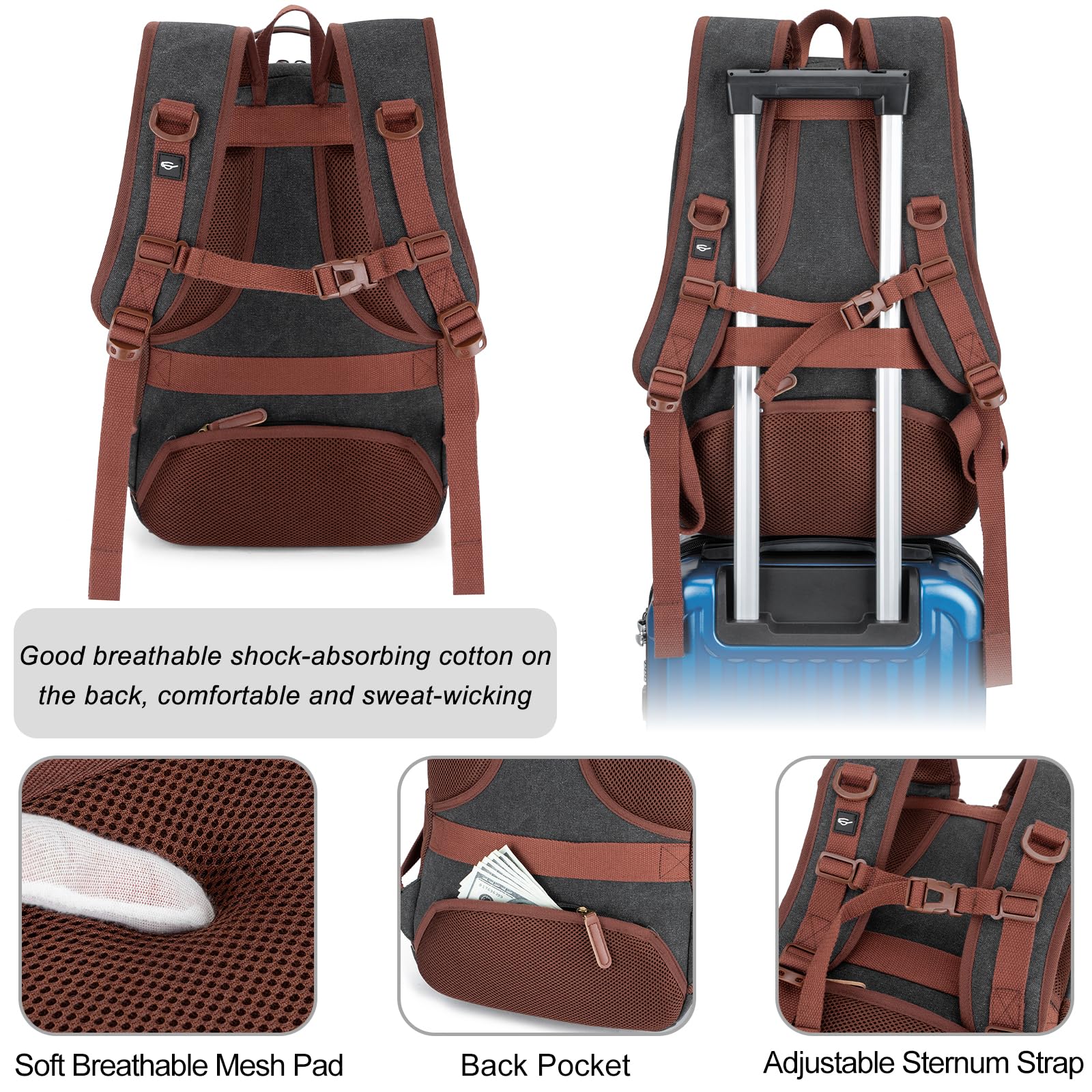 Sac à dos RFID : doté d'une poche RFID intégrée, ce sac à dos en toile garantit que vos informations personnelles sont en sécurité lors des voyages quotidiens et des aventures épiques, ce qui en fait une option confortable et sécurisée. Il y a également une poche de sécurité cachée à l'arrière pour contenir facilement votre passeport, portefeuille et autres articles importants. Ce sac à dos est fabriqué en toile lavable de haute qualité, qui ne se froisse pas facilement, ne se déforme pas et ne rétrécit pas facilement, et a une bonne résistance à l'usure., (Non étanche) Les poches latérales peuvent également être utilisées pour ranger des bouteilles d'eau et des parapluies. Tzowla Sac à dos de voyage pour ordinateur portable résistant à l'eau La poche principale est également équipée d'un crochet de sécurité pour empêcher les voleurs d'ouvrir le sac à dos facilement. La poche principale du sac à dos en toile Tzowla dispose d'un compartiment pour ordinateur portable pouvant contenir un ordinateur portable jusqu'à 15,6. Sac à dos antivol pour ordinateur portable, homme et femme... Le design 3D en nid d'abeille sur le dos favorise la circulation de l'air, le gardant frais et confortable même pendant une longue période, ce qui le rend facile à transporter et respirant sans être étouffé. Beaucoup de poches et bien organisé : disposition raisonnable avec rangement organisé. Capacité d'un sac à dos de 25 à 30 L. Sac A Dos Professionnel Homme Tzowla Sac à Dos Pour Ordinateur Portable - Acheter Sur Sac à Dos RFID Sécurisé Sac cuir et toile pour Madame Confort et durabilité : le dos et les bretelles de ce sac à dos en toile au design minimaliste sont fabriqués en maille épaisse respirante, résistante à la pression et absorbant les chocs.