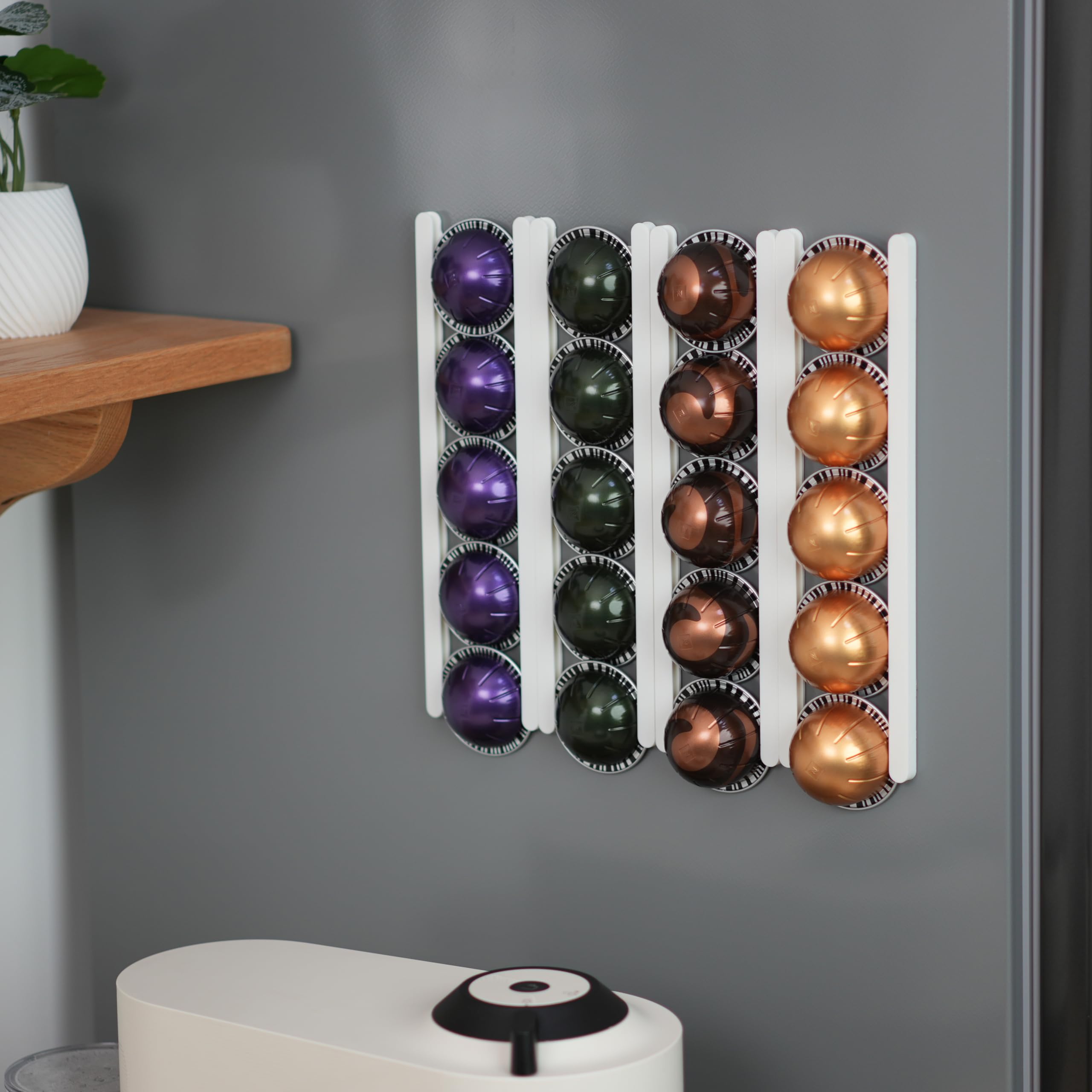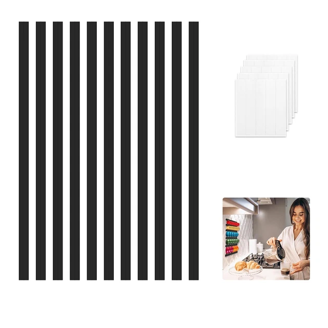 Duokon Porte-capsules Support à Dosettes de café pour Dosettes Avec un design peu encombrant et une capacité de jusqu'à 3 boîtes de capsules Vertuo, il vous permet de mélanger et d'assortir vos saveurs préférées sans effort, les gardant bien organisées et facilement accessibles Support Capsule Vertuo Support Mural Pour Organisateur De Dosettes Nespresso Vertuo, 10 Support Adhésif Sous Armoire Fabriqué à partir de matériau acrylique transparent de haute qualité, ce support de dosettes offre une touche élégante et moderne à votre décoration de cuisine tout en étant facile à nettoyer et à entretenir. Fabriqué en acrylique haute transparence pour une apparence élégante et un design minimaliste qui correspond à n'importe quelle esthétique. Chaque porte-capsule Vertuo peut contenir 15 capsules. Le support peut être monté sur un mur ou une armoire. Les capsules se chargent facilement dans le support... Organisez vos dosettes Nespresso Vertuo tout en gardant vos tiroirs et votre comptoir bien rangés avec un support mural pour dosettes. Se fixe en toute sécurité sur votre mur ou à l'intérieur d'une porte d'armoire avec des bandes adhésives préinstallées qui ne bougent pas. Dimensions : 11,3 x 6,8 x 0,63,5 cm Le design coulissant permet de garder vos capsules facilement accessibles, qu'elles soient montées verticalement ou horizontalement.