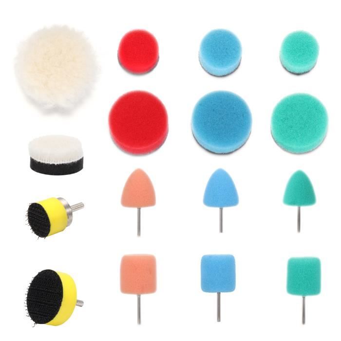 Disques Laine Polissage Peinture Kit De Polissage Pour Perceuse - VBESTLIFE - Tampons De Polissage 3 Pouces Lavables - Blanc Tampons Polissage Laine Pour Perceuse électrique Kit polissage pour voiture sur perceuse Le kit de polissage DOLASO comprend 5 pièces, dont 3 tampons de polissage en laine de 150 mm, 1 tampon adhésif de 150 mm et 1 adaptateur de perceuse M14. Ces... Les tampons de polissage en laine sont spécialement conçus pour un contact optimal avec la surface et une répartition uniforme de la pression, idéal pour travailler sur la peinture automobile, les meubles en bois et les surfaces en verre. La plaque d'appui robuste dispose d'un système de montage sécurisé avec un arbre de perçage de 4,5 cm pour un fonctionnement stable. Ce kit offre tout le nécessaire pour obtenir des résultats de qualité professionnelle sur différentes surfaces, des détails automobiles à la restauration de meubles. L'ensemble comprend une plaque de support de 9,6 cm de diamètre avec fixation pour perceuse, 5 tampons de polissage en laine de qualité supérieure et un chiffon de nettoyage double face (30 cm x 30 cm). La taille compacte des coussinets permet un contrôle précis tout en travaillant à la fois sur de grandes surfaces et sur des sections détaillées. Kit complet : comprend un tampon de polissage de 9,6 cm, 5 disques de polissage en laine, une tige de fixation pour perceuse (4,5 cm) et un chiffon de nettoyage double face de 30 cm x 30 cm pour des besoins de polissage complets Utilisation polyvalente : compatible avec la plupart des perceuses électriques et convient pour le polissage de voitures, meubles, surfaces en verre et autres matériaux nécessitant un polissage de qualité professionnelle 1. Informations sur le kit: le kit complet comprend 1 tampon de polissage en laine, 2 tampons de polissage éponge, 1 papier givré, un adaptateur de perceuse et 1 clé, etc. 2, conception pratique: le tampon polit les surfaces à leur finition la plus lisse sans causer de dommages, fournissant un nettoyage puissant de la saleté et un polissage de la voiture.3, matériau Durable: tampon de...