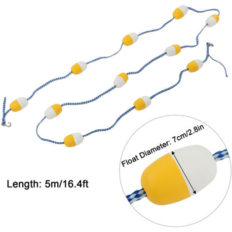 Ligne flottante de sécurité à 5 m de la corde de séparation de sécurité *Utilisation polyvalente : cette bouée peut être utilisée comme ligne de bouée ou ligne de bouée de sécurité dans les piscines, les cours d'eau, les bancs, et plus encore. équipement Marquage Piscine Sécurité Kit De Flotteurs De Sécurité Pour Piscine Avec Ligne De Séparation En Polypropylène Standard Et Rope And Float Pool Ball Deadbolt Bl20119 Uoyynyguhu Corde Nylon 5m Boules *Durable : fabriqué en nylon de haute qualité, ce produit est très résistant à l'usure, et peut être utilisé pendant de longues périodes. Ligne de séparation de couloir de piscine de 5 m, diamètre du flotteur 7 cm, corde flottante... Chaque produit utilise des matériaux de haute performance avec une résistance accrue aux UV, des antioxydants. Il augmente considérablement la durée de vie... Identification facile : la corde tressée en nylon blanc et bleu est facile à identifier dans l'eau, permettant de distinguer facilement les différentes zones. Couleur : blanc et bleu. Utilisation polyvalente : cette bouée peut être utilisée comme ligne de bouée ou ligne de bouée de sécurité dans les piscines, les cours d'eau, les bancs, et plus encore. * Identification facile : le nylon blanc et bleu pour corde tressée est facile à identifier dans l'eau, permettant une distinction claire entre les différentes zones. Forte flottabilité : avec un design unique et un milieu creux, cette bouée a une forte flottabilité et peut flotter sur l'eau. Caractéristiques : *Visibilité efficace : ce produit sert de bouée pour une excellente visibilité, ce qui le rend pour diviser les zones dangereuses ou les voies de baignade.
