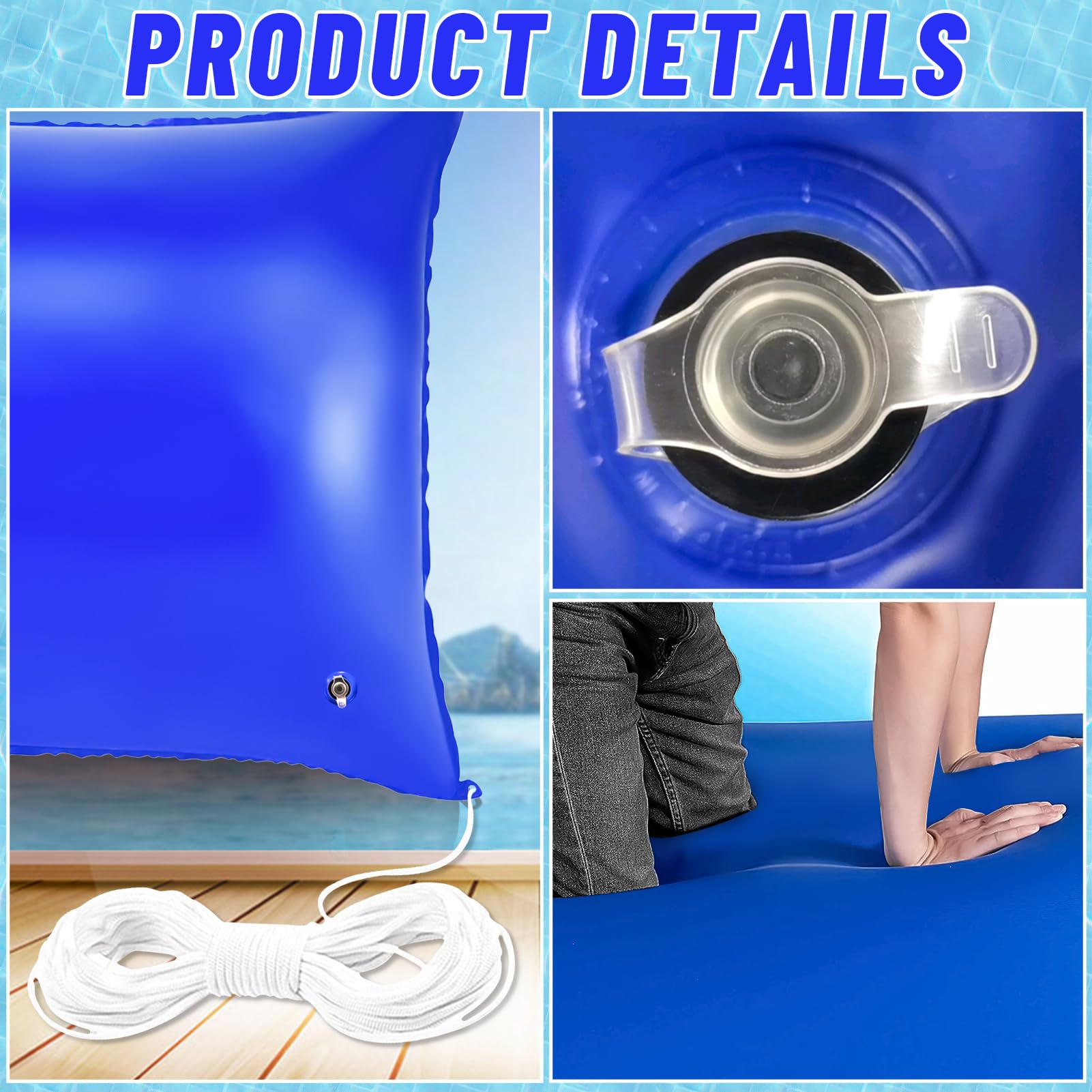 [Contenu de la livraison] 1 x coussin de piscine Webcam Visioconférence Streaming HOHOVYVY Coussin De Piscine Pour Piscines Hors-sol Coussin D Hivernage Pour Piscine Caractéristiques techniques : *Matériau résistant au froid : ces coussins de piscine sont fabriqués à partir de matériaux spécialement conçus qui résistent aux basses températures et conservent ainsi leur fonction et leur efficacité même en hiver. Coussin gonflable pour piscine] : Vous recevrez un coussin gonflable pour piscine de 120 cm de diamètre et 55 cm de hauteur. Ce coussin vous aidera à répartir la glace et à réduire la pression sur les parois de votre piscine lorsque l'eau gèle en hiver *Kit complet de fixation hivernale : chaque colis contient tout ce dont vous avez besoin pour une installation efficace en hiver, afin que votre piscine soit bien protégée jusqu'au retour des mois les plus chauds. [Matériau résistant au froid] Fabriqué à partir de matériaux spécialement conçus qui résistent aux basses températures et garantissent ainsi fonctionnalité et efficacité tout au long de la saison d'hiver. Pour protéger ta piscine pendant l'hiver, ces coussins gonflables sont vraiment pratiques. Ils font 120cm de diamètre sur 55cm de hauteur et sont faits en PVC... *Installation facile : les coussins de piscine sont faciles à utiliser et peuvent être facilement installés dans votre piscine hors-sol. *Renforcement hivernal efficace : ces coussins sont indispensables pour la fermeture des piscines hors-sol. [Résistance hivernale efficace] Ces coussins sont indispensables pour les piscines hors-sol. Protection Hivernage Piscine Coussin Hiver Piscine 200x250cm - Protection Gel XXL PVC 0.4mm Résistant Ils empêchent l'accumulation d'eau et protègent la structure de la piscine contre les dommages hivernaux. [Installation facile] Le design convivial permet une installation rapide dans votre piscine hors-sol et simplifie la fixation hivernale.