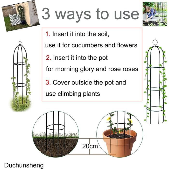 Le dessus est en forme d'oiseau et d'écureuil, unique et rend votre support de fleurs encore plus vivant Caractéristiques : Nom : treillis de jardin pour plantes grimpantes. Description du produit Description: Ce treillis de jardin offre beaucoup d'espace à vos plantes grimpantes et vignes et peut bien soutenir les plantes pour qu'elles poussent droites et saines. Support pour plantes grimpantes, fleurs et légumes. Treillis Pot De Fleurs Modulable Cadre De Support Pour Plantes, 3 Pièces, Support D... – Grandado Tuteur Pour Plantes Potagères Comme par exemple concombre, aubergine, tomate, lierre, roses, clématites, jasmin, haricots, pois, raisins, latte, etc. Avertissement De Sûreté Attention : ce cadre d'escalade est robuste et durable, mais il a une capacité de charge limitée. Facile à installer : notre cadre d'escalade pour plantes peut être épissé et empilé, vous pouvez augmenter la hauteur à tout moment après les besoins de croissance des plantes (le paquet mesure quatre couches de hauteur), amovible et empilable, peu encombrant et facile à ranger. Plusieurs formes de bricolage : chaque partie du pot de fleurs est amovible, vous pouvez le faire vous-même selon la situation réelle. NOWAYTOSTART Tuteur de Support pour Plantes grimpantes,Anneaux de Cages Matériau : tige en fibre de verre., Couleur : noir. Pots de fleurs applicables : pots de fleurs universels avec diamètre intérieur ≥ 25,4 cm, pots de fleurs de 5 litres recommandés. Vous pouvez placer une seule pince dans n'importe quelle position, ou connecter deux ou plusieurs pinces ensemble pour obtenir un effet plus fort. Parfait pour soutenir les plantes grimpantes telles que les roses, les orchidées Crabapple et les plantes succulentes comme le lierre du diable. Très pratique pour soutenir les tiges capricieuses et les branches tombantes des petites plantes.Donnez à vos plantes d'intérieur le soutien dont elles ont besoin pour les aider à prospérer dans leurs pots. Assurez la fermeté du treillis, vous n'avez donc pas besoin de vous soucier de la qualité de ce support de pot de fleur OLDELITE Lot de 6 Tuteurs de Support pour Plantes de Jardin, 20 cm de Large x 35 cm de Haut, Demi-Rond, en métal, Support pour Plantes, Rose, Vigne, Tomate Si... Diamètre de la colonne : 8 mm. Décoration de jardin élégante : le support de plantes est noir sur toute la longueur, assorti aux fleurs et aux fruits, très élégant et structuré. Robuste et durable : ce support de jardinière est fabriqué en fibre de verre et en plastique de haute qualité, le piquet de support de jardin n'est pas facile à déformer, robuste et durable, il peut bien soutenir et protéger les plantes ; et il est résistant aux intempéries, durable, réutilisable et a une longue durée de vie pour résister à toutes sortes de conditions météorologiques. Totalement résistant à la corrosion, ne rouille pas. Support pour plantes : ce support d'escalade peut aider à faire pousser des plantes grimpantes verticales telles que les tomates, les haricots ou les roses, également adapté pour la création de plantes vertes, pivoines, hortensias, roses. Assurez-vous que l'échafaudage est bien ancré avant de placer les plantes dessus.