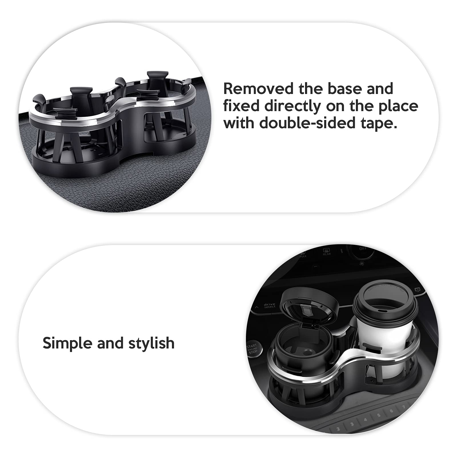 Sa taille compacte garantit qu'il n'obstrue pas l'espace environnant tout en offrant une grande capacité de maintien de la tasse. Accessoire Voiture Pratique Double Adaptateur Réglable Pour Porte-gobelet De Voiture Pour Une Porte-gobelet Voiture Caractéristiques : * Pratique et pratique. Pratique à installer : ajustez la base du porte-gobelet à une position appropriée, puis placez-le dans le porte-gobelet d'origine de la voiture, et enfin faites pivoter le porte-gobelet pour éjecter la clé fixe dans la base jusqu'à ce qu'il soit fixé Il élargit la capacité du porte-gobelet de votre voiture et offre plus de commodité lors de vos déplacements. Base réglable : le porte-gobelet est équipé d'une base réglable, vous permettant de personnaliser la largeur pour s'adapter à différentes tailles de tasses. Extension du porte-gobelet : la base extensible peut être ajustée de 2,6 à 3,8 pouces de diamètre pour s'adapter à différents types de porte-gobelets dans la... 【Double porte-gobelet】 : ce porte-gobelet de voiture est conçu avec deux adaptateurs, vous permettant de tenir deux tasses ou bouteilles en même temps. Caractéristiques : Couleur : noir., *Matériau : ABS., *Dimensions : voir photo., *Poids : 500 g., Application : Compatibilité : oui. Il maintient vos tasses en place, les déversements et les accidents pendant la conduite. JSCARLIFE Adaptateur universel 2 en 1 pour porte-gobelet de Contenu de l'emballage : Porte-gobelet de voiture. 【Compatibilité】: ce porte-gobelet est compatible avec la plupart des modèles de voiture grâce à son design.