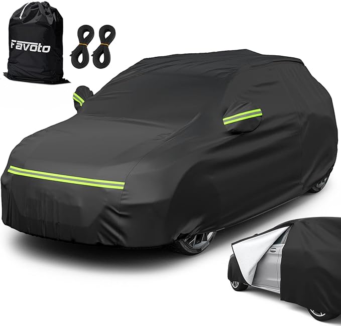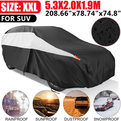 Elle offre des propriétés coupe-vent, imperméable et résistante à la neige, ainsi qu'une protection contre les feuilles mortes et la poussière. Rangement pratique : Le sac de rangement inclus permet de plier et de ranger facilement la housse, occupant ainsi un minimum d'espace dans le coffre de votre voiture. Housse Voiture SUV Avec Cordon D'arrimage Housse De Voiture Universelle Pour SUV Compact, Bâche Voiture Protection Voiture Neige Poussière Bâche Voiture Extérieur Imperméable Anti-UV, Anti-Vent et Anti-poussière avec Fermeture Éclair Latérale, Housse pour Voiture 450 x 190 x 160 cm Argent (Compact... Que vous stationniez votre voiture pour une longue durée dans un garage souterrain ou sur une place de parking extérieure d'une résidence, ou que vous partiez en voyage d'affaires ou en vacances, cette housse simple offre une protection complète contre la pluie, la poussière, la neige, les fientes d'oiseaux, les feuilles mortes, les cendres d'arbres et même le soleil d'été. Cette housse universelle pour SUV compact est fabriquée en taffetas de polyester 190T haute densité, alliant légèreté et durabilité exceptionnelle. Renforcée et stable : La housse est dotée d'un cordon d'arrimage réglable en bas pour une fixation sûre aux roues ou au châssis, assurant ainsi sa stabilité même par vent fort. Un cordon de serrage en bas permet de fixer la housse aux roues de votre véhicule pour plus de stabilité. Il vous permet de garder la carrosserie de votre voiture belle à tout moment, quels que soient les changements climatiques, économisant ainsi le temps et le coût des lavages et entretiens fréquents de votre voiture. Protection toutes saisons Été : Reflète efficacement le soleil d'été, empêchant les rayons UV de vieillir et d'endommager la peinture et l'intérieur. Elle est livrée avec un sac de rangement pliable pour un rangement facile. Bords élastiques : La conception élastique des bords permet un ajustement plus confortable et empêche les vents forts de pénétrer. Fonctions du produit: - La housse de voiture offre une protection maximale à votre véhicule avec le moins d'effort. Conçue pour une utilisation en intérieur ou en extérieur. Non seulement vous pouvez garder votre voiture sans poussière, mais aussi éviter les rayures inutiles. - Légère, elle est rapide à installer ou à retirer de votre véhicule. Spécifications: Marque: ELUTO Nom du... Housse de voiture universelle pour SUV compact : Fabriquée en taffetas de polyester 190T haute densité, cette housse d'extérieur est légère et résistante. Fabrication de qualité : Cette housse de voiture est dotée d'un bord élastique qui s'adapte à votre modèle de véhicule pour un confort optimal. Hiver : Matériau durable résistant à la neige, au verglas et à la grêle, protégeant ainsi la peinture et les vitres. Bâche Voiture SUV 480x180x150cm Housse de véhicule universelle Exterieur 210T Étanche Anti-Neige
