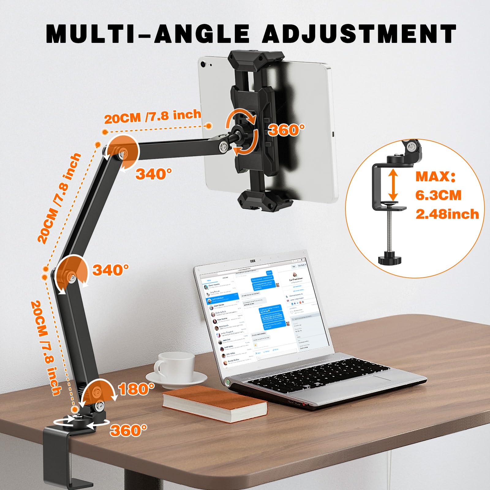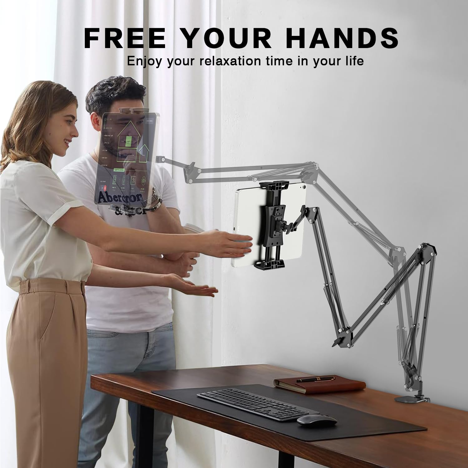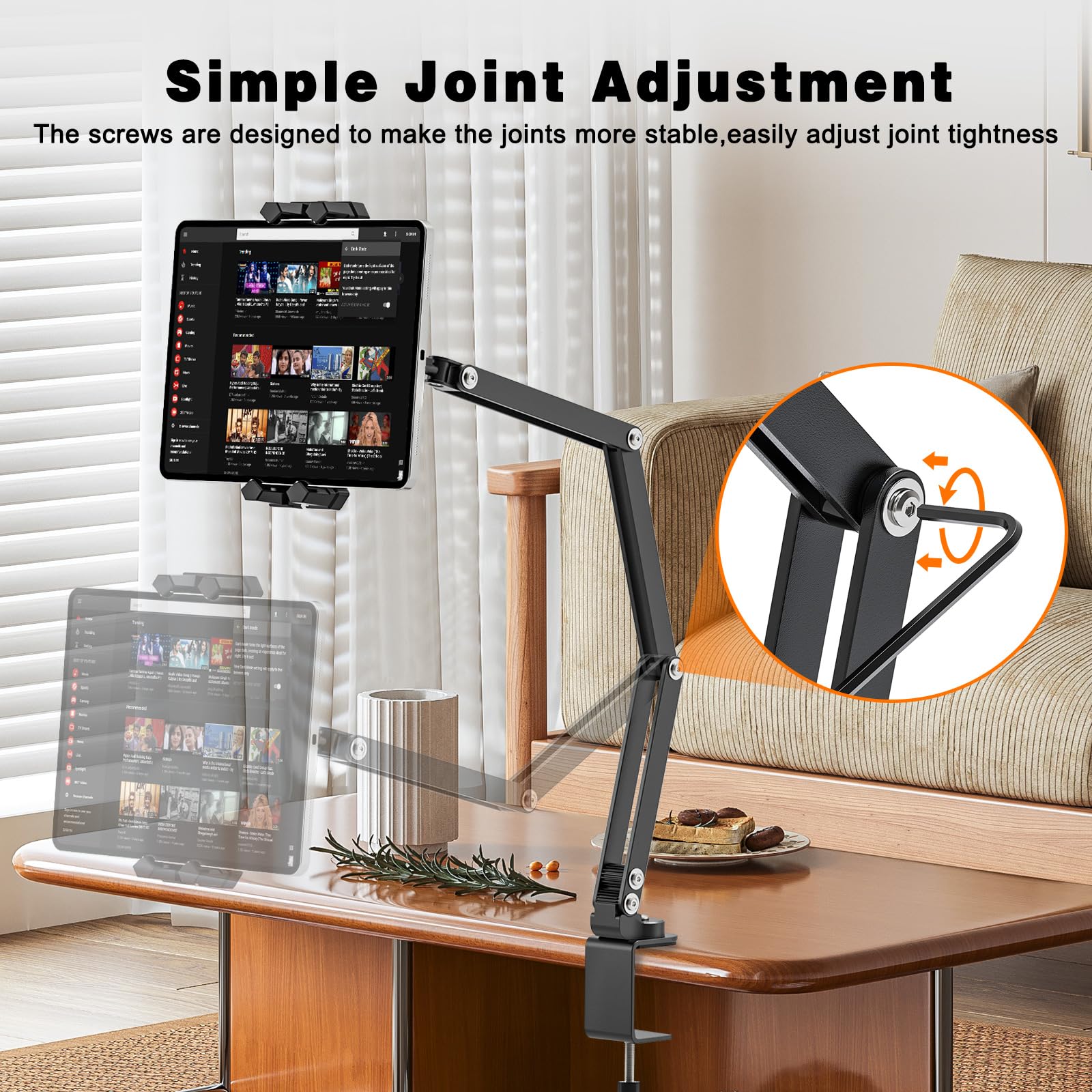 Ressentez-vous une gêne au niveau du cou lorsque vous penchez la tête lorsque vous utilisez votre tablette ou votre téléphone portable pendant de longues périodes ? Besoin d'un support facile à installer, compatible avec tous les appareils et permettant une charge continue ? Byfoyif Support pour Tablette --- offre un réglage flexible, une installation rapide et un support robuste. Caractéristiques Matériaux : Plastique (pince), Acier au carbone (bras), Aluminium (base) Couleur : Noir Dimensions : Pince 16,5 x 8,5 cm, Bras 40 cm Épaisseur de table compatible : 1 à 6,5 cm Contenu : 1 support pour tablette Serrez la vis de la base pour un maintien ferme. Installation facile Assemblez simplement la pince, le bras col de cygne et la base, puis fixez-le sur des tables ou des têtes de lit jusqu'à 6,5 cm d'épaisseur. 【Installation facile, utilisation instantanée】Pour l'utiliser, il suffit d'assembler la pince, le col de cygne et la base, de le placer sur votre bureau ou votre table de chevet, puis de serrer la vis de réglage de la base. Ses extrémités sont perforées et dotées d'emplacements dédiés pour le câble de charge, vous permettant de recharger votre appareil sans l'interrompre, pour une utilisation continue. Accessoire Liseuse DURABLE - Support Tablette Bureau - Support Ipad - Support Pour Tablette Tactile - Pour Tablettes De 7 à 13" - Argenté - 1 Pièce - 893023 Pour Lit Bureau Streaming Support De Table Pour Tablette, Rotatif À 360°, Tablettes De 4,7 À 12 Adaptable à de multiples scénarios Le support tablette à pince convient aux diffusions en direct, aux cours en ligne, au visionnage de séries au lit, au travail de bureau, etc. Compatible avec les téléphones et tablettes de 5,5 à 11,5 pouces Le porte tablette est réglable en largeur de 13,5 à 30 cm et est compatible avec les appareils de 5,5 à 11,5 pouces. Sa structure robuste empêche les oscillations et les chutes, assurant une stabilité optimale à votre appareil. 1 pièce Support de téléphone pliable double en alliage d'aluminium... Réglage flexible à 360° Le bras en col de cygne de 40 cm pivote à 360 degrés et se plie pour ajuster la hauteur. 【Scénarios polyvalents, expérience immersive】Idéal pour regarder des streamings en direct, regarder des séries, suivre des cours en ligne ou regarder des films, ce porte-tablette bureau vous permet de libérer vos mains et de profiter d'une expérience immersive. En position assise pour regarder des streamings en direct ou des séries, vous pouvez relever l'écran à hauteur des yeux, ce qui vous évite de regarder vers le bas et soulage votre cou pour un confort accru. iMoshion Coque tablette rotatif à 360° pour iPad 10 (2022) 10.9 pouces... Sa conception robuste permet des ajustements fréquents, sans risque de déformation ni de dommage, garantissant un maintien fiable et durable. Son réglage flexible s'adapte à différents angles de vue, ce qui le rend parfait pour se détendre au lit ou travailler à un bureau, rendant le quotidien plus facile et plus agréable. Aucun outil supplémentaire n'est requis.